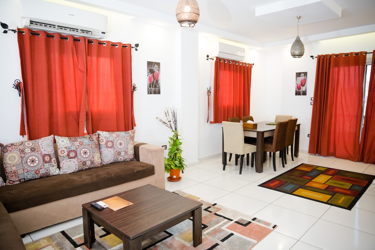 - Este lugar único tiene un estilo / apartamento con servicios ultramodernizado. - No se permiten géneros mixtos ilegalmente. - Pareja de matrimonio consuetudinario está bien - Rampa en la entrada del edificio para sillas de ruedas y equipaje. - Supermercado Seoudi: todo tipo de queso de primera calidad (queso blando y duro) del supermercado Seoudi (junto al edificio del apartamento). - Lavandería, peluquero, barbería, mezquita , canto. - Paquete «Ultimate» de BeIN/Shahid VIP SSC