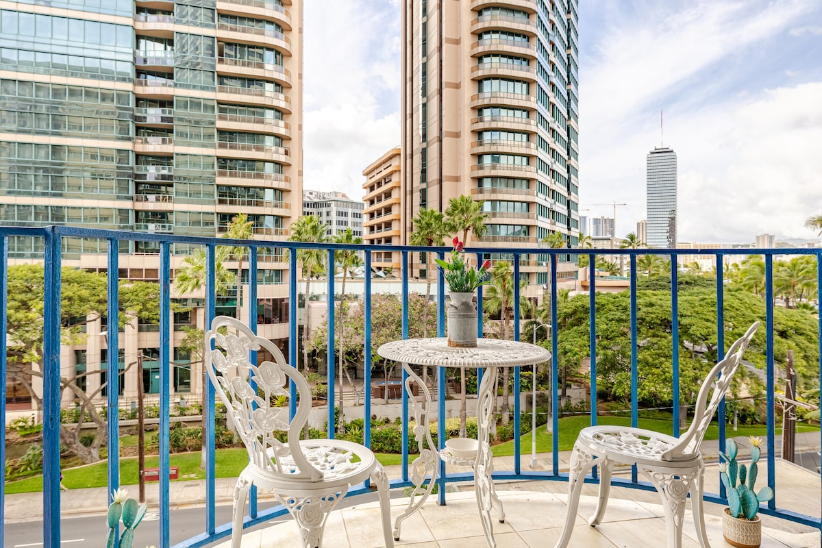 Aloha 🌺 Enjoy an unforgettable stay at our island-style retreat-just a 10-min walk to Waikiki Beach, Ala Moana, the Royal Hawaiian Shopping Center, International Marketplace, and the Hawaii Convention Center. Relax with a pool, BBQ, FREE parking, fast WiFi, AC in each room, and steps to convenient laundry. Take in pool, city, and mountain views from your private balcony. Soundproofed (anti-noise) windows to ensure peaceful and comfortable nights. Perfect for families or groups of 5–6. 🌴