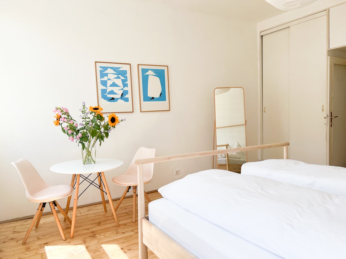 Entra en la comodidad de tu elegante apartamento en la azotea bañado por el sol, con excelentes instalaciones en el centro de Viena. A solo unos pasos de la vibrante Radetzkyplatz y del río Danubio, el apartamento promete un refugio urbano, a poca distancia a pie de los mejores restaurantes, tiendas, atracciones y lugares de interés de la ciudad. ¡La auténtica vida vienesa en todo su esplendor! Cama tamaño✔ king + sofá cama Sala ✔ de estar de planta abierta. Cocina ✔ Totalmente Equipada Balcón ✔ privado. ✔ Smart TV Wifi de✔ alta velocidad ✔ Aire acondicionado Más información ↓