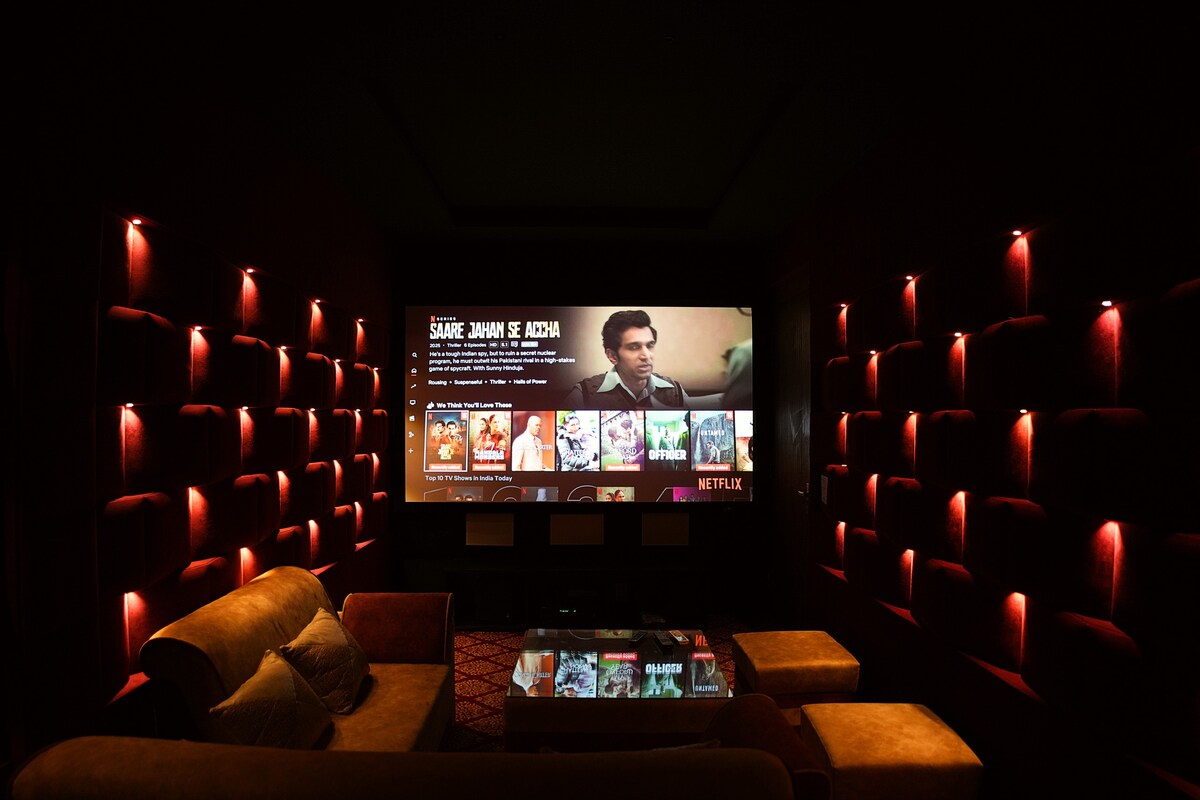 ◆Breathe in the stillness of the Dhauladhar range from a thoughtfully designed 4-bedroom hideaway. ◆Relax in the freestanding bathtubs in two bedrooms, unwind in the sunlit lounge, or enjoy friendly competition in the gaming zone. ◆Step into gardens lit with lanterns, gather around a glowing bonfire, or dine under stars by the poolside. ◆A shared pool offers the perfect midday escape, while curated spaces for kids & an on-site restaurant make every corner a blend of connection, comfort & luxury.
