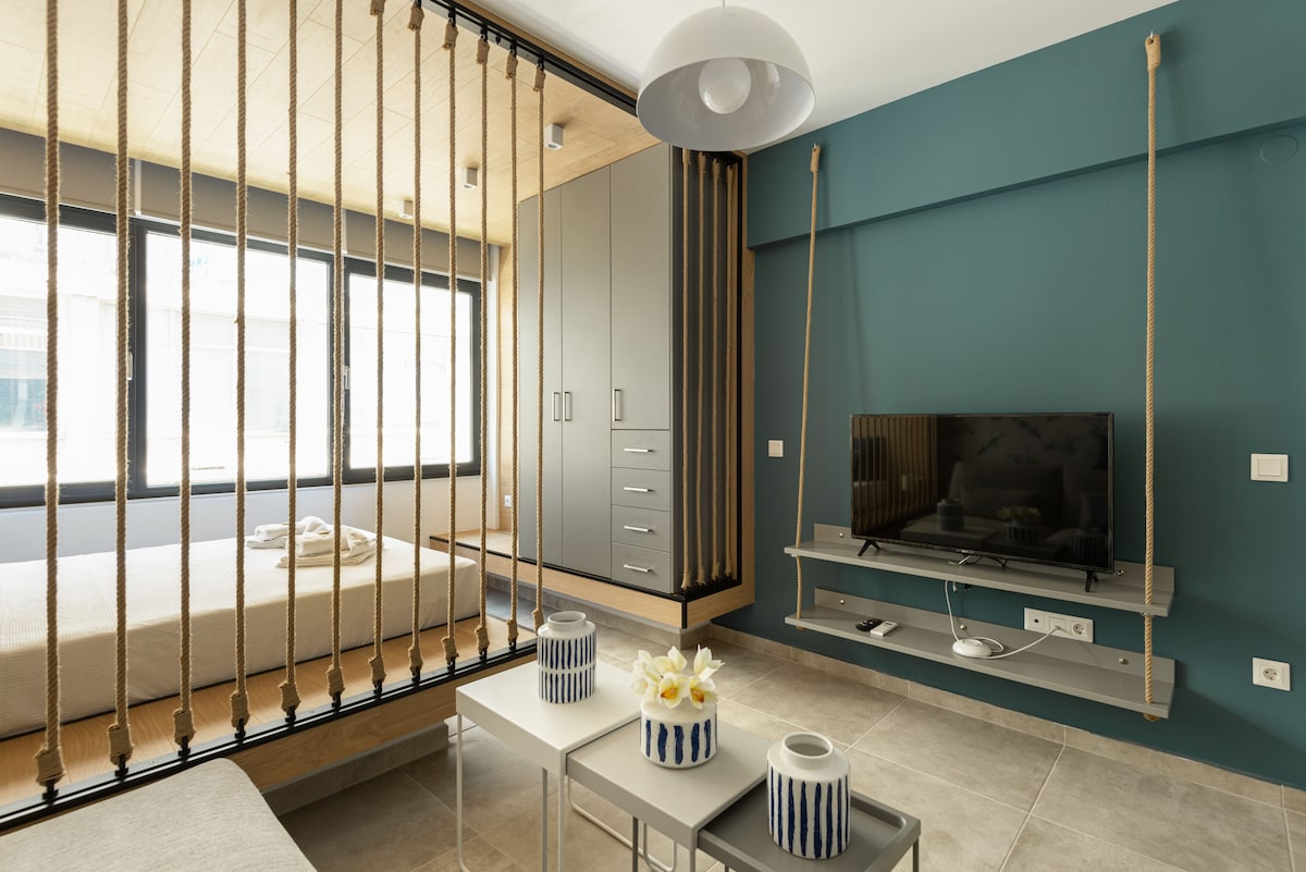 El Loft Apartment está en la zona más hermosa de Tesalónica, en Kalamaria - A 50 m del mar. - A 10 minutos del centro de la ciudad. - A 10 minutos del aeropuerto. A pocos pasos de restaurantes , cafeterías , bares, playa de arena, puerto deportivo, clubes de vela y remo, el apartamento cuenta con: - Una habitación abierta con balcón. - Cocina equipada: un baño moderno. - 1 cama doble: 1 sofá cama doble. - Servicios de bienvenida -Internet de internet de alta velocidad - Estacionamiento gratuito - Televisión inteligente con Netflix - Aire acondicionado