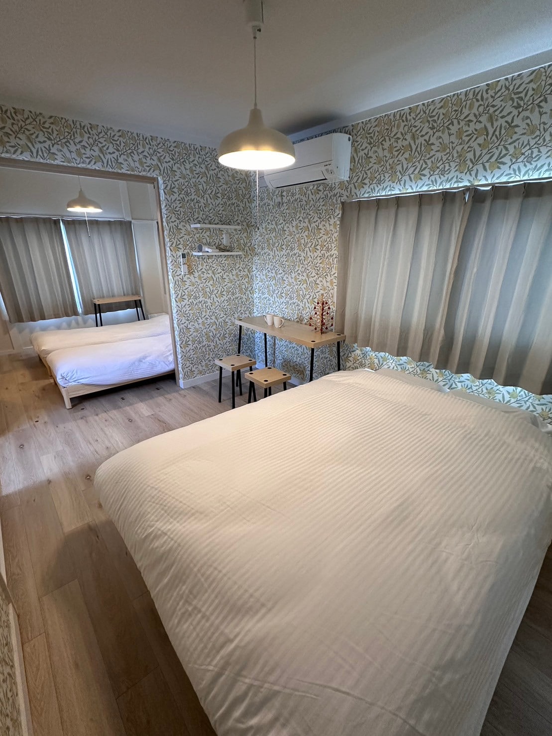 Lo hice una habitación de estilo japonés.Disfruta de las poderosas pinturas en la pantalla grande usando obras maestras japonesas como fondo de pantalla.En cada habitación se proporcionan lámparas japonesas únicas (linternas).Relájate de tus viajes con la luz por la noche.Hay camas, pero disfruta de la comodidad de dormir en un futón, exclusivo de Japón.Japoneses, por favor, vuelvan a disfrutar de la comodidad de dormir en un futón.Los niños son bienvenidos.También se admiten mascotas, pero consulta con el propietario con antelación si tienes perros grandes, más de 2 perros, cachorros, etc.La tienda de comestibles más cercana está a unos 5 minutos a pie.También hay un pequeño supermercado a unos 5 minutos a pie.La biblioteca de Biei también está a unos 5 minutos a pie.El edificio es precioso, así que pasa por aquí cuando te sientas un poco cansado de relajarte, investigar o viajar.Se encuentra a unos 5 minutos a pie del centro de Biei, y es un lugar perfecto para cenar, ir de compras y pasear.El parque Nakamachi está cerca, y la locomotora de vapor SL49600 "Kyuroku", que estuvo activa en la línea principal de Hakodate, se conserva en un estado estático.También puedes ver su majestuosa apariencia.