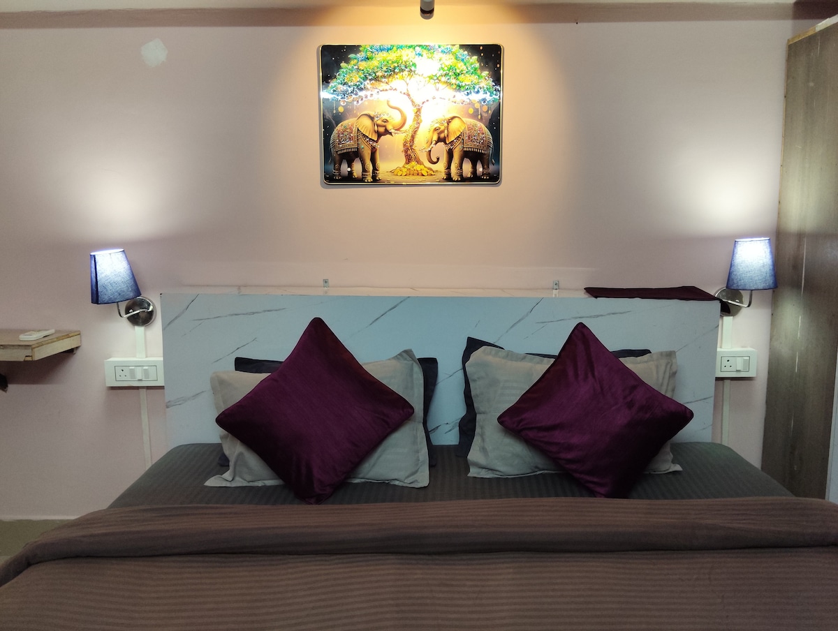 The Royal Nest, DPI Premium 1BHK homestay designed for comfort and relaxation. Enjoy soft premium cotton linen, an attached washroom, and a fully functional kitchen for a convenient stay. The air-conditioned space , 43 inch smart TV with popular OTT subscription also features video games and board games to keep you refreshed and entertained. Located in a peaceful area, perfect for couples, families, or solo travelers seeking a cozy and enjoyable stay.