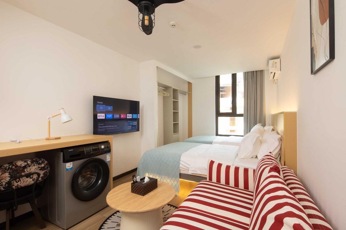 Brand new studio apartment on street 178. Rooftop, Jacuzzi, AC, WiFi, fully equipped kitchen, cable TV and 24/7 Security. The queen size bed and a sofa bed. Guest Access: The whole apartment unit will be yours. We live close by and will be able to help if anything is needed. The Neighbourhood-It's located in central Phnom Penh next to Royal Palace, National Museum, and Riverside with 3 minutes walking distant. Many coffee shop, mart, restaurants/bars around the area.