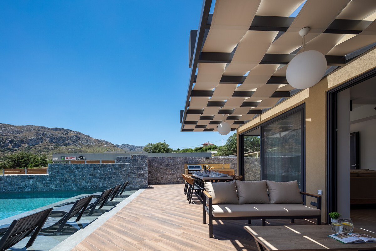 Villa con vistas al mar en el sur de Creta con piscina climatizada y barbacoa
