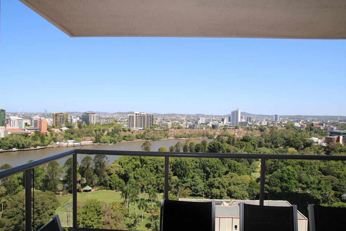 Nuestro impresionante apartamento de un dormitorio con cama tamaño king y vistas al río y al jardín botánico es perfecto para estancias cortas y largas. Situado en el interior del distrito financiero, ¡el edificio SkyTower de Brisbane está cerca de todas partes! Las características del apartamento incluyen: - Amplio dormitorio con cama tamaño king y armario empotrado. Se proporcionan toallas y sábanas limpias. - Sofá cama en la sala de estar. - Aire acondicionado centralizado. - Cocina de gas con cocina completa de chef. - Zona de lavandería escondida. - Lavadora y secadora. - Cafetera. - TV inteligente. - Wifi gratuito.