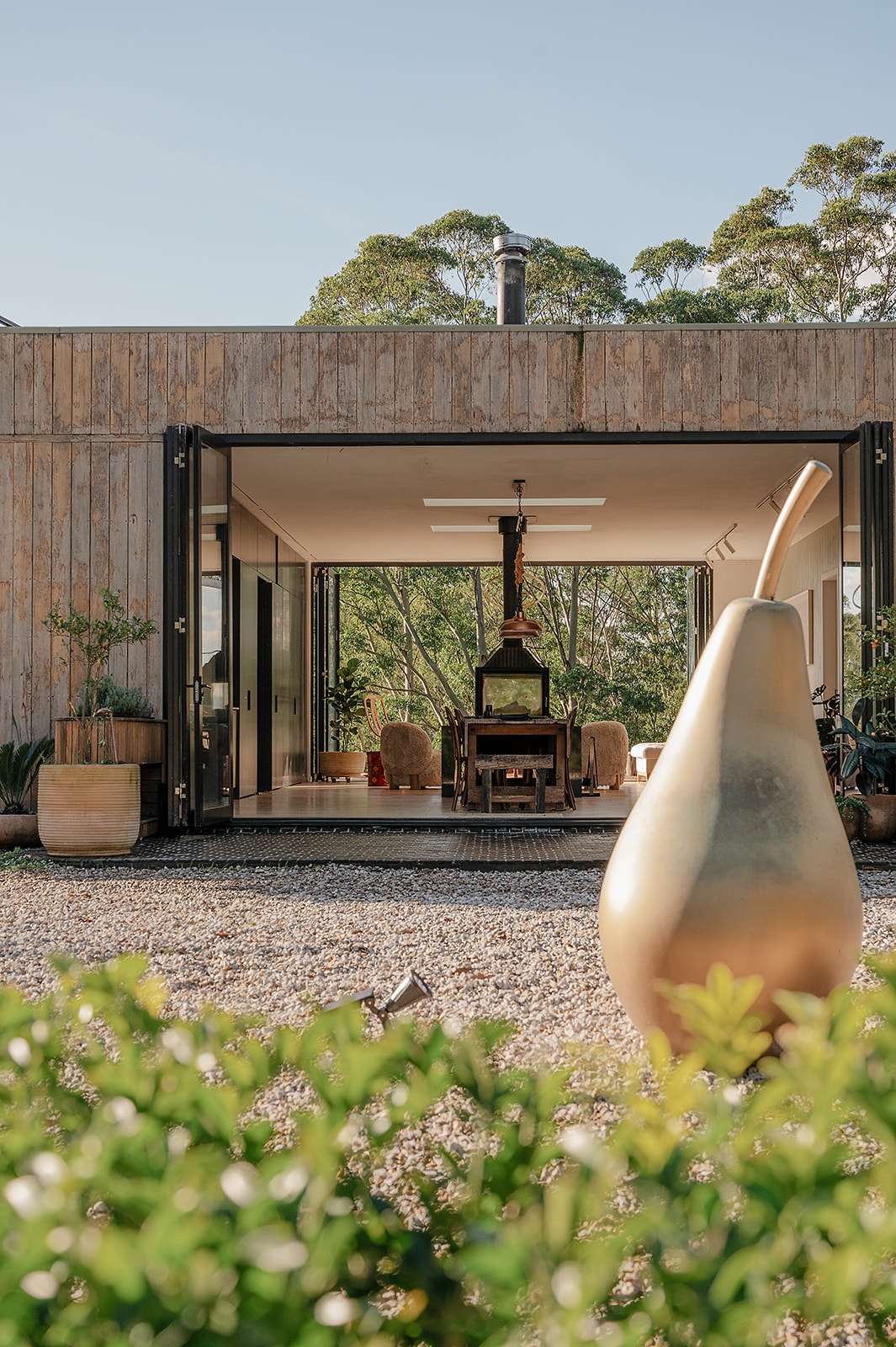 'The Dairy' was one of the original dairy milking sheds in Upper Kangaroo River. This cottage has been lovingly restored and creatively transformed into luxury accommodation using reclaimed and recycled materials. A luxurious eco-haven for a peaceful escape from the everyday world! The three sets of French doors, which used to allow three cows in to be milked at once, now allow the living area to be opened to the alfresco dining area which is covered by an old wisteria vine.