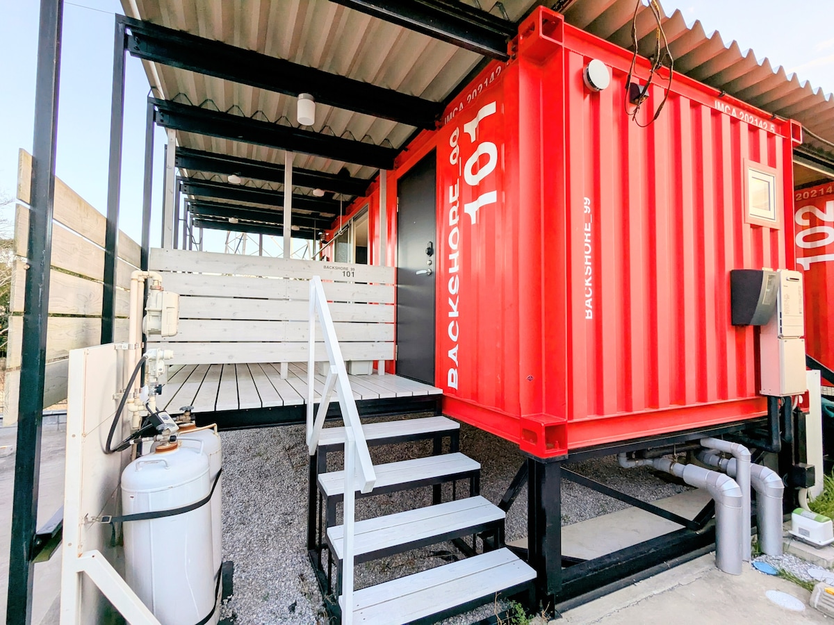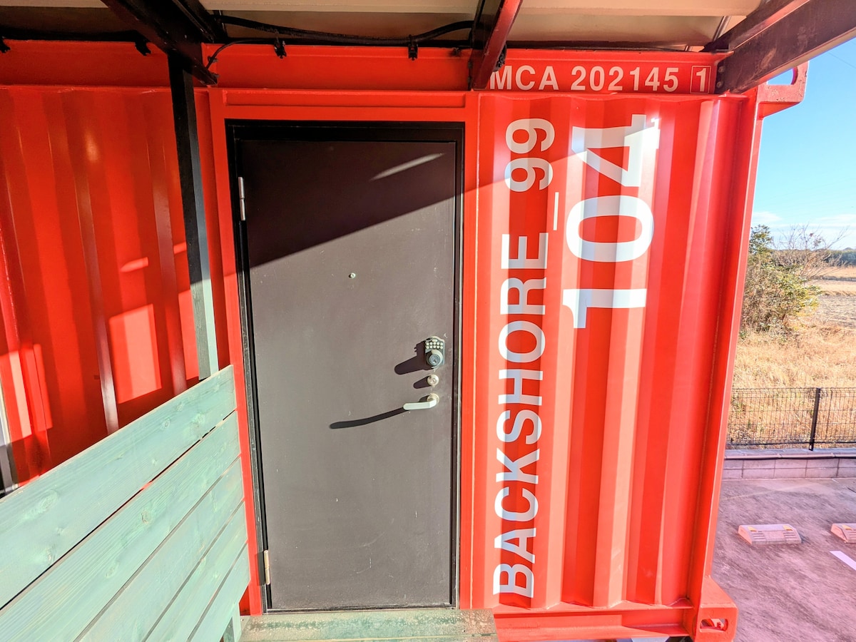 Escapa de la ciudad y relájate en esta casa contenedor, abrazada por la fresca brisa marina de Kujukuri. Un espacio privado para un máximo de 2 personas, con un diseño sencillo y una sensación de unidad con la naturaleza que libera suavemente tu mente. *Por favor, traiga su propio cepillo de dientes y ropa de dormir. ◆ Aspectos destacados A ・7 minutos en auto del mar ・Con terraza cubierta ・Parrilla posible ・proyector ・Wifi gratuito ・Ducha exterior Disfruta de momentos de paz bajo el cielo estrellado, lejos del ruido. ¡Esperamos recibirte!