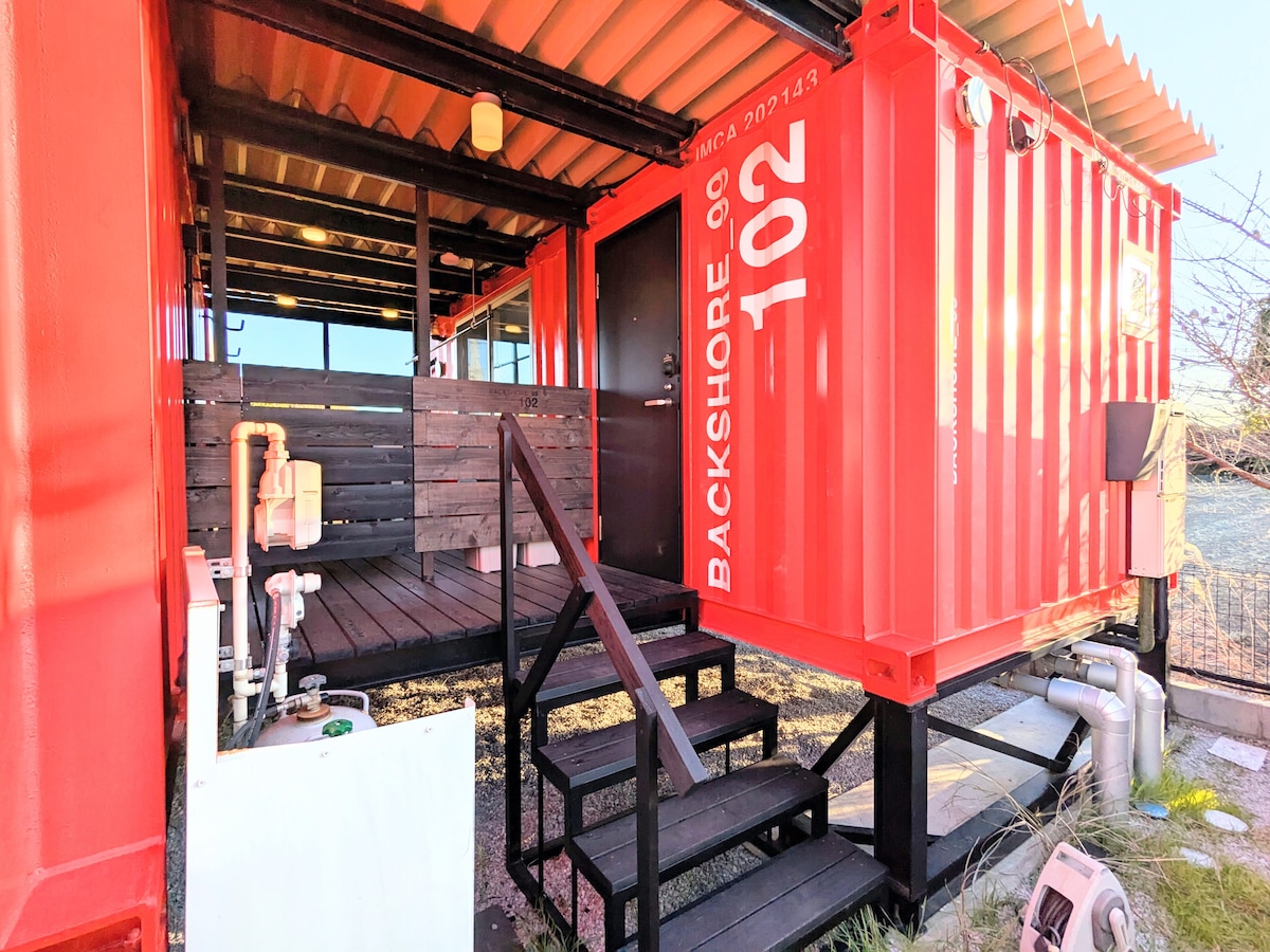 Tómate un descanso de la vida diaria y relájate en esta casa contenedor, abrazada por la refrescante brisa marina de Kujukuri. Un espacio especial para un máximo de 2 huéspedes y tu mascota, con un diseño sencillo que se funde con la naturaleza para ofrecerte una auténtica relajación. *Por favor, traiga su propio cepillo de dientes y ropa de dormir. ■Aspectos destacados ・Admite mascotas: hospédate cómodamente con tu perro A ・7 minutos en auto del mar ・Con terraza cubierta ・Parrilla posible ・proyector ・Wifi gratuito ・Ducha exterior Disfruta de momentos de paz bajo el cielo estrellado, lejos del ruido.