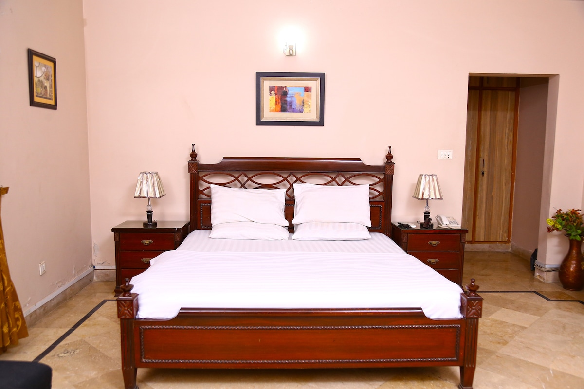Alójate en un exclusivo club privado en DHA Phase 6, Karachi. Disfruta de un salón privado, servicio de limpieza y servicio de habitaciones. Accede a la piscina, el gimnasio, una pista para caminar e instalaciones deportivas por una tarifa mínima. La entrada cerrada, la seguridad 24/7 y una ubicación privilegiada garantizan una estancia sin problemas. Habitación individual disponible con una cama tamaño king.
