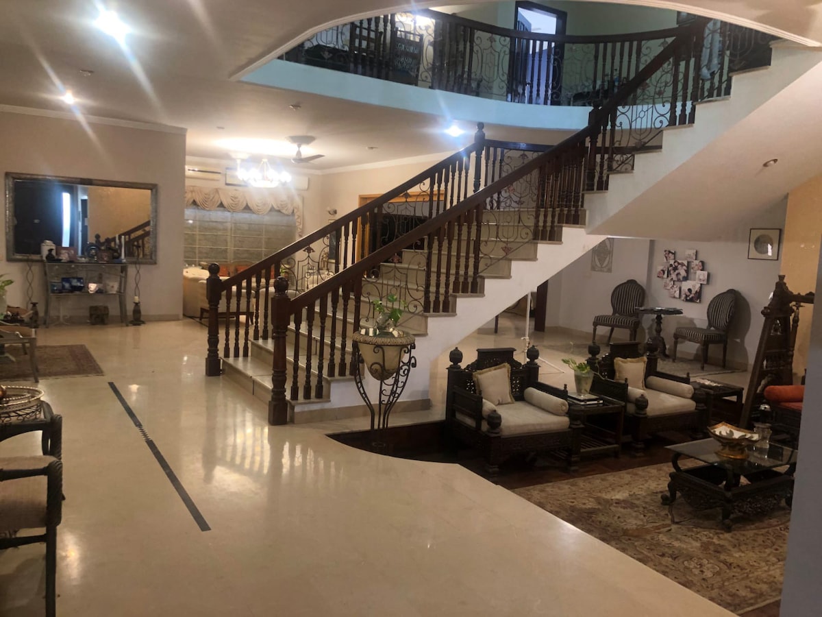 Ubicada en el corazón de Karachi, nuestra casa de huéspedes ofrece un refugio tranquilo en medio del bullicio de la ciudad. Disfruta de acceso exclusivo a nuestra hermosa zona al aire libre, una característica poco común en los Airbnb de Karachi, perfecta para relajarte y escapar. Mejores ventajas: • Delicioso desayuno gratuito para empezar el día. • Guía de viaje para explorar Karachi como un habitante más. • Proximidad a centros comerciales, restaurantes, universidades, gimnasios, cajeros automáticos y hospitales. • Alojamiento seguro y protegido con un ambiente hogareño. Traslado desde el aeropuerto.
