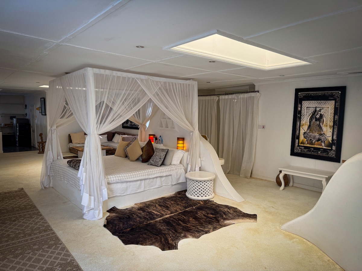 Esta impresionante casa del árbol de 1 dormitorio está situada en el frondoso barrio de Lavington, que es una ubicación inigualable en el corazón de Nairobi. Cuenta con vistas de 180 grados del valle, una cocina/comedor de planta abierta totalmente equipada y dos salones. El dormitorio principal ofrece un baño privado, persianas opacas y una cama tamaño queen. Tienes un jardín privado a la sombra de un guayabo y acceso a un jardín comunitario con vistas excepcionales al valle y un estanque koi. Ideal para parejas y amigos.