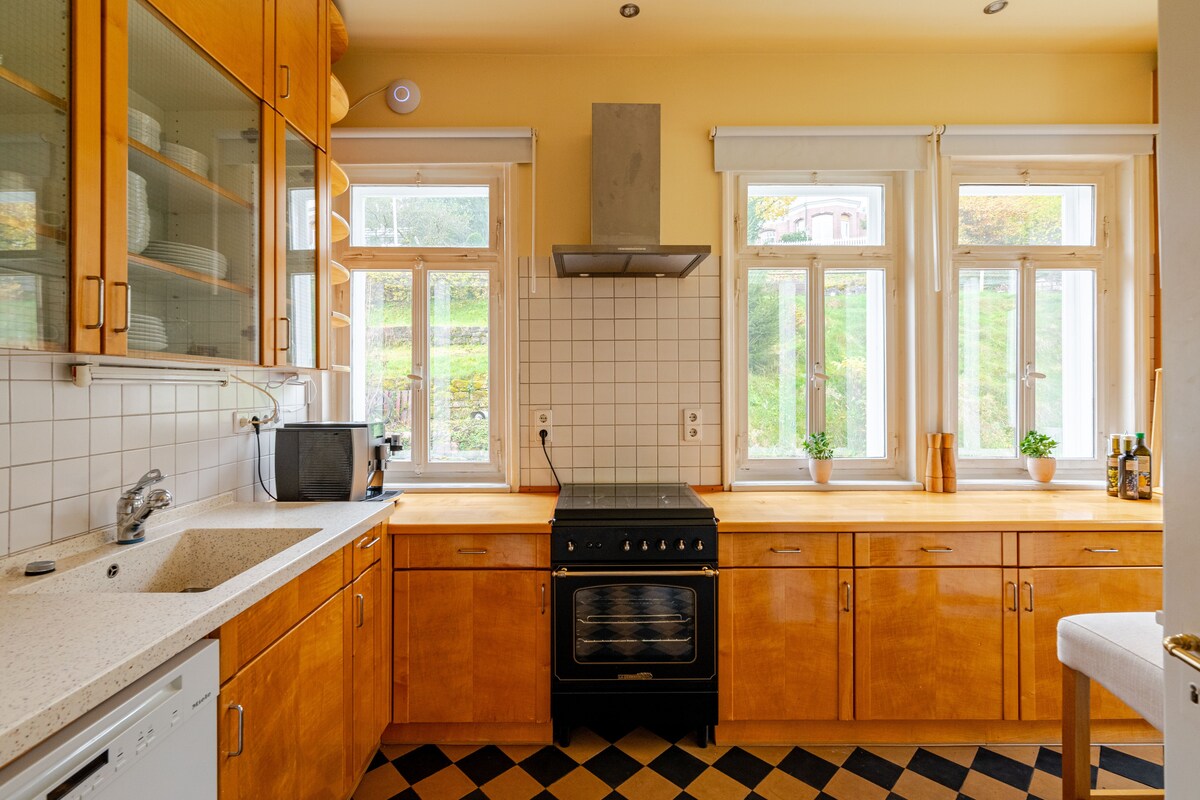 Construida en 1900 y totalmente renovada en 2023, esta villa aislada ofrece mucho espacio para un máximo de 11 personas en 250 metros cuadrados de espacio habitable, con tres balcones y una terraza de 60 metros cuadrados en una colina con vistas a la ciudad. La casa ofrece un total de 3 baños, 4 dormitorios con camas individuales tamaño king, un loft con un sofá cama, una consola de juegos, sauna privada y tus propios estudios de fitness. Todas las atracciones principales del norte de la Selva Negra están cerca. NUEVO EN PRIMAVERA DE 2025: lujosa sauna al aire libre.