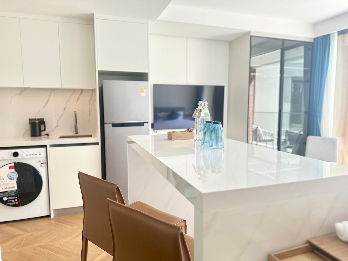 Stylish 33 sqm studio in the new premium Andaman Riviera complex, located just 500 meters from Bang Tao Beach. Bright and spacious, the apartment features panoramic windows, designer furniture, and a fully equipped kitchen, creating a warm and comfortable atmosphere. A rooftop pool with panoramic views offers the perfect space to relax and enjoy stunning sunsets. The studio is ideal for both short and long stays, combining modern style, convenience, and true hotel-level service.