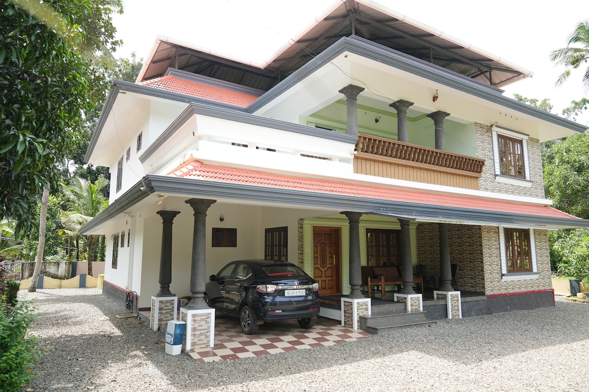 Te damos la bienvenida a tu escapada perfecta. Relájate en nuestra casa fresca y tranquila ubicada en un barrio tranquilo y verde. Con todos los servicios esenciales, como supermercados, restaurantes y opciones de transporte a 1 km, la comodidad está a la vuelta de la esquina. A solo 500 metros del templo de Mannarssala Nagaraja y del templo de Haripad. Nuestras habitaciones, supercómodas, están diseñadas para una estancia tranquila, tanto si vienes por trabajo como por placer. ¡Reserva ahora y experimenta la comodidad y la tranquilidad como nunca antes!