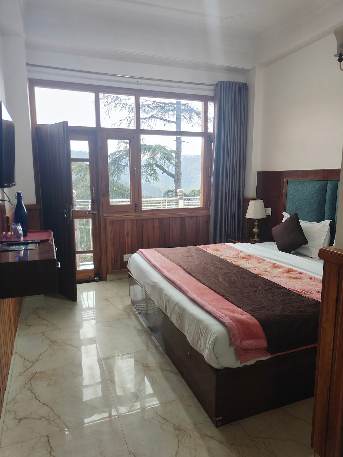 A spacious 1 BHK family suite in Kasauli, offering a cozy bedroom, comfortable living area, modern bathroom, and a private balcony with serene pine-hill views. Ideal for families, couples, and peaceful mountain getaways.