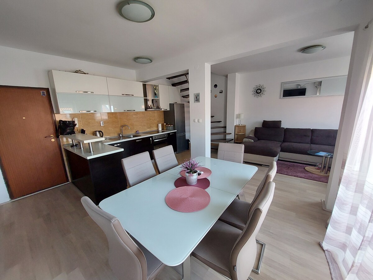 Este apartamento consta de dos dormitorios, sala de estar, dos aseos y dos terrazas. Todo está decorado de forma sencilla y es muy nuevo. Está muy cerca de Acy marina Baotić y del centro de la ciudad. Tampoco está lejos de la playa.