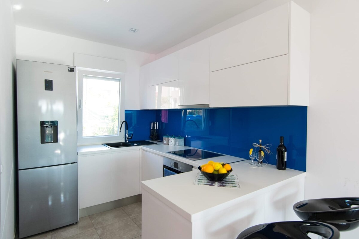 Apartamentos nuevos, modernos y completamente amueblados de lujo con piscina (¡calefacción y masaje!) y barbacoa, a pocos pasos del mar. Utilizarás dos apartamentos separados, uno en el primer piso y el segundo en la planta baja. Perfecto para familias grandes y amigos. Bien situado para explorar Split y Trogir, hacer excursiones diarias a islas y parques nacionales (cascadas de Krka, lagos de Plitvice, etc.). Si quieres alquilar un barco o hacer un viaje en barco, no dudes en ponerte en contacto con nosotros. Se admiten MASCOTAS previa solicitud.