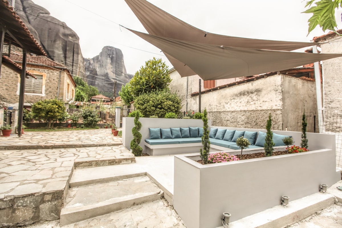 Modern, new studio lets you wake up under the rocks of Meteora.This fully equipped studio is perfect for travelers and couples seeking an unforgettable getaway.Start your morning with a traditional Greek coffee in our yard.Enjoy the tranquility and the sounds of our own private retreat, with the adventure of Meteora at your doorstep!