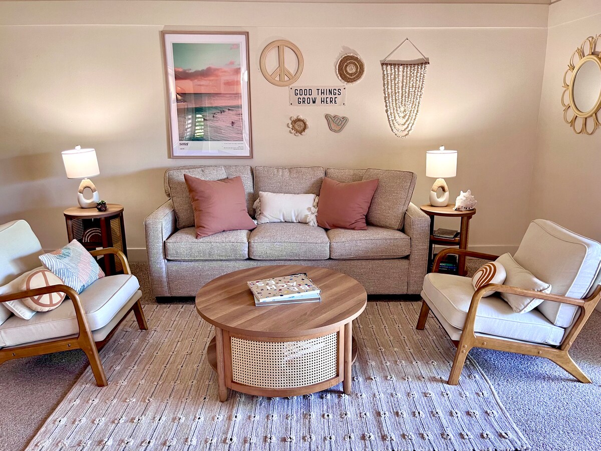 Este luminoso y espacioso apartamento actualizado es el lugar ideal para alojarse en la soleada Poʻipū para parejas, recién casados y familias pequeñas. El espacio abierto es limpio y acogedor, con un ambiente boho costero, y disfrutarás de hermosas vistas al mar y al jardín desde el enorme lanai de nivel superior. La ubicación es la mejor: desde la propiedad frente a la playa, puedes ir caminando a varias de las mejores playas de la costa sur, cafeterías locales, restaurantes, tiendas y la increíble piscina en cuestión de minutos.
