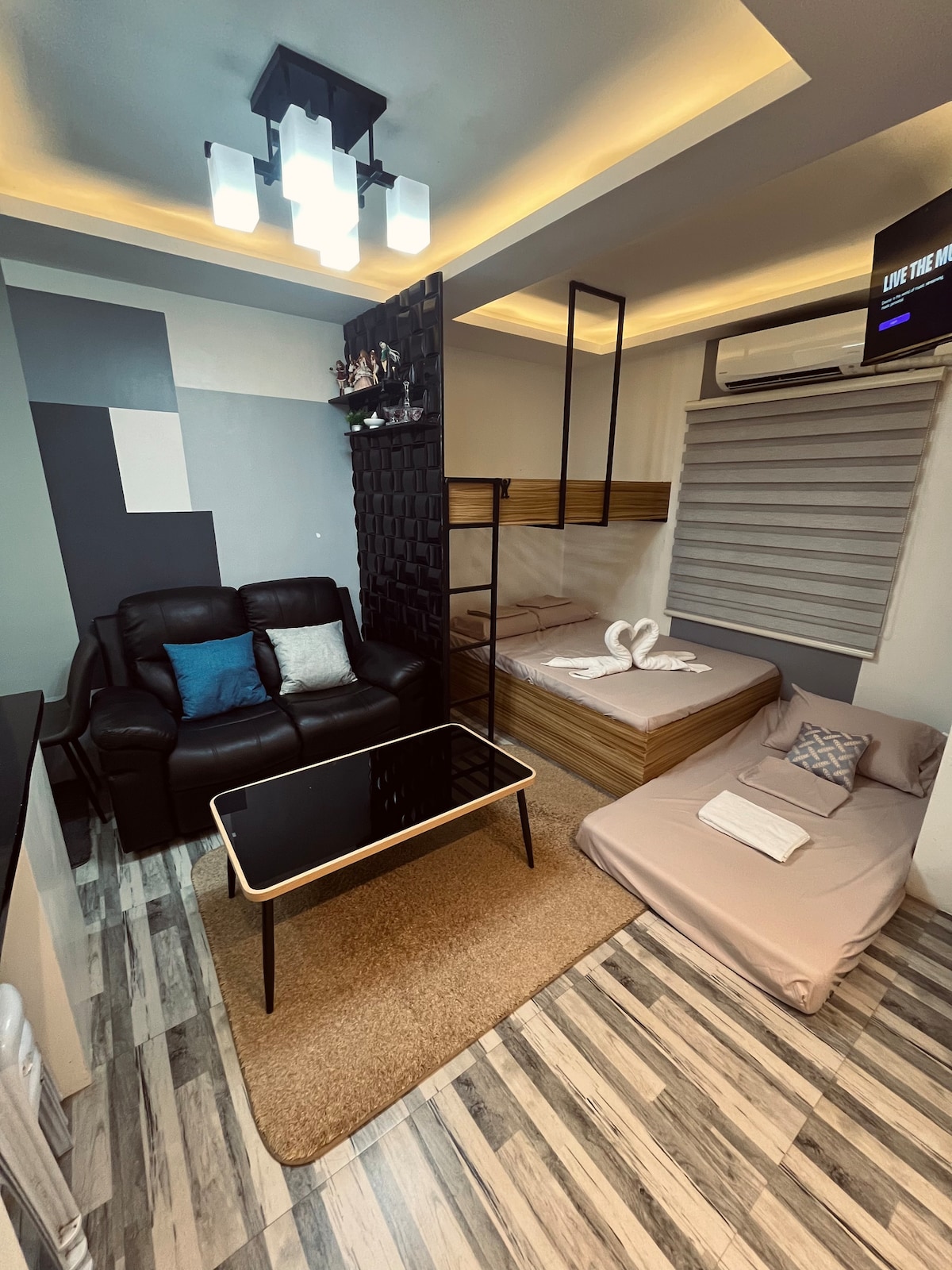 Disfruta de una experiencia temática de Estocolmo en este nuevo estudio de 23 metros cuadrados en Avida Aspira, Cagayan de Oro City. Diseñado con un estilo minimalista sueco, el espacio cuenta con una acogedora cama para dos, una zona de trabajo y comedor flexible, una cocina elegante para cocinar a la ligera y un baño moderno con ducha de agua fría y caliente. Con una ubicación céntrica cerca de centros comerciales, cafeterías y centros de negocios, es la combinación perfecta de estilo, comodidad y conveniencia para parejas, viajeros solitarios o huéspedes de negocios.