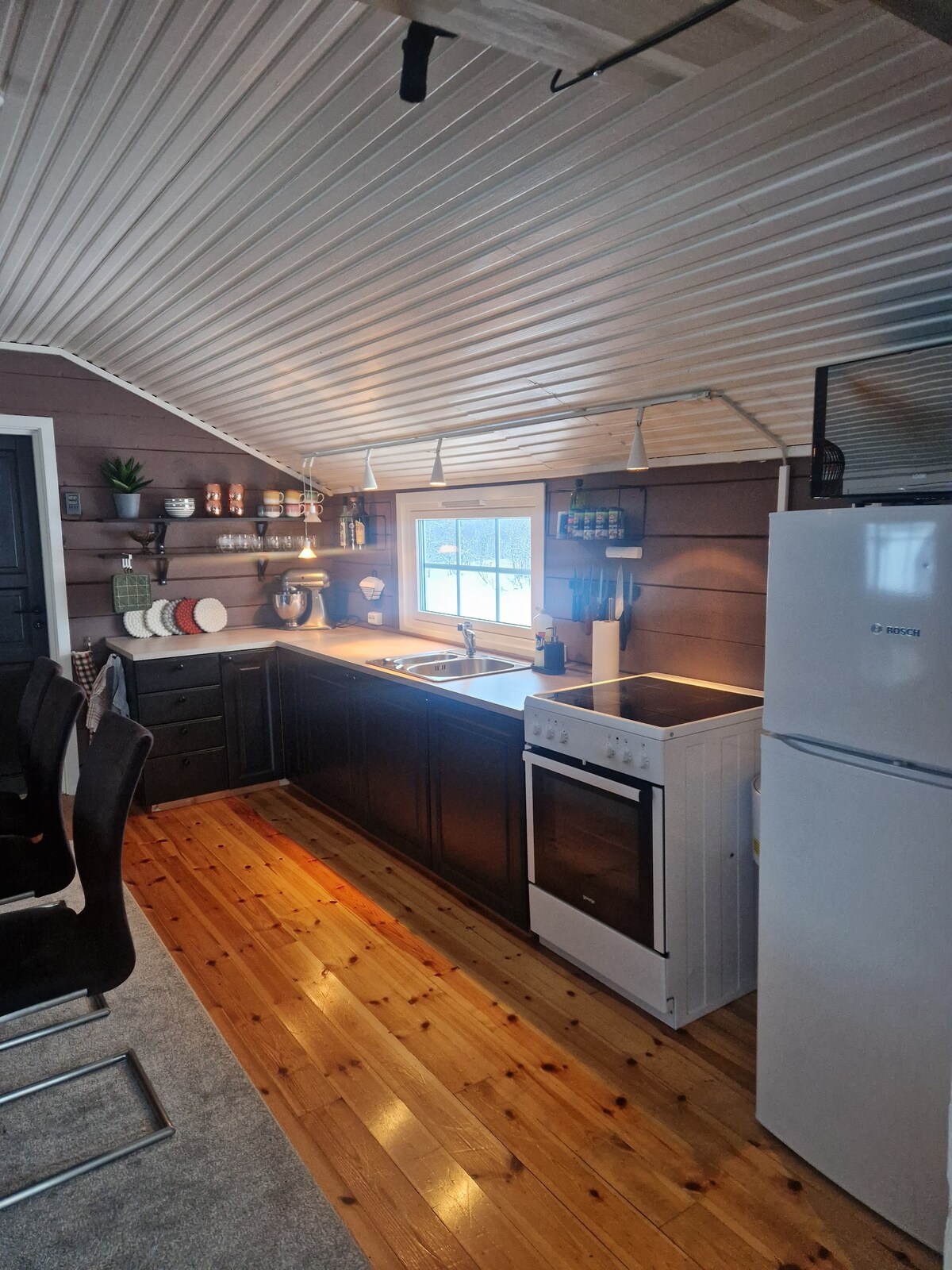 Bienvenido a nuestro moderno y luminoso apartamento en un entorno tranquilo, a solo 5 minutos del centro de Kautokeino. Perfecto para parejas, amigos o familias pequeñas: aquí disfrutarás de comodidad, privacidad y experiencias en la naturaleza justo al salir de la puerta. ¡Aparcamiento gratuito, cocina completa y wifi rápido incluidos!