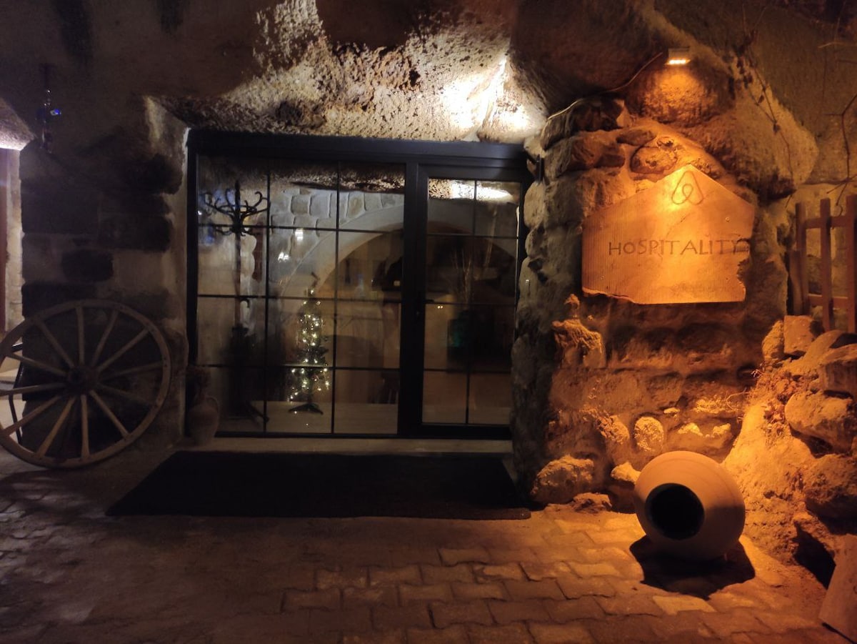 Disfruta del ambiente único de Capadocia en nuestras auténticas habitaciones de piedra. Este espacio privado cuenta con dos habitaciones de piedra separadas y dos baños, ideal para familias o grupos pequeños. Se incluye desayuno turco tradicional diario. Ubicado cerca de Göreme y de las principales atracciones, nuestro lugar ofrece comodidad y una experiencia local inolvidable. Nos complace ayudar a nuestros huéspedes con recorridos en globo y actividades locales.