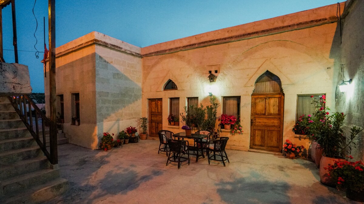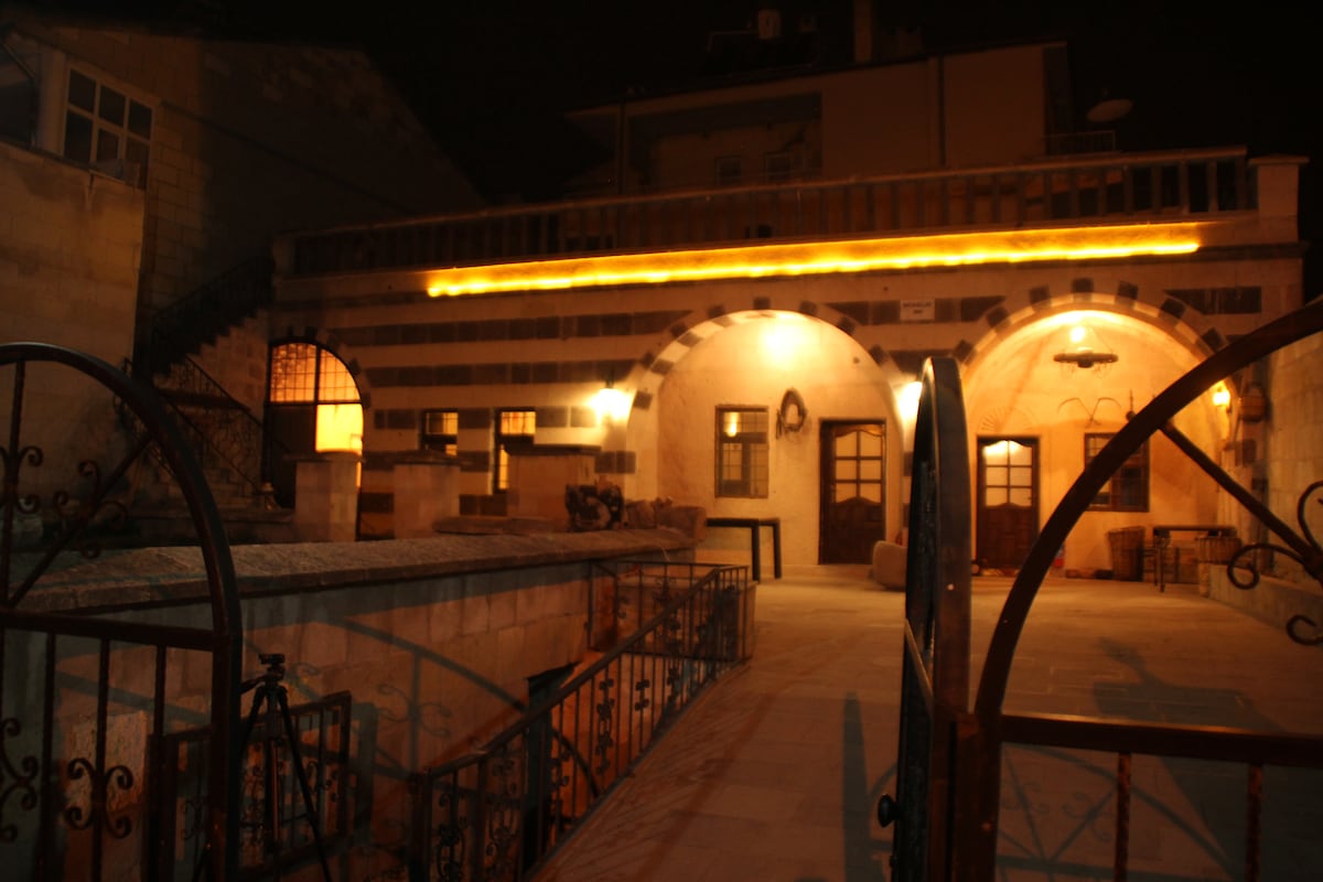 Bienvenido a Lost Villa, una casa cueva de tres pisos bellamente restaurada situada en el corazón de Mustafapaşa, un tranquilo e histórico pueblo griego en Capadocia. Retrocede en el tiempo mientras disfrutas de las comodidades modernas en este refugio único en una cueva, perfecto para parejas, familias o grupos pequeños. Despiértate con el silencio, disfruta de un café en el balcón con vistas a los tejados del pueblo y explora las chimeneas de hadas y las rutas de senderismo cercanas. Por la noche, relájate en tu acogedor dormitorio en la cueva o cena en uno de los restaurantes.