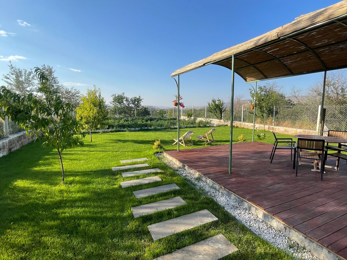 La casa será completamente suya, nuestra casa independiente con jardín en el centro de Capadocia le espera para unas vacaciones cómodas y seguras. Nuestra casa tiene 4 habitaciones y 1 salón, que se asignarán solo a nuestros huéspedes durante su estancia. Puede pasar un rato tranquilo con los animales pequeños en el jardín de nuestra casa y disfrutar de las verduras y frutas frescas de nuestro jardín. Se encuentra a la misma distancia de los lugares históricos de la región y ofrece oportunidades como el tour en globo, el tour en quad, el safari a caballo, el safari en jeep y la noche turca.