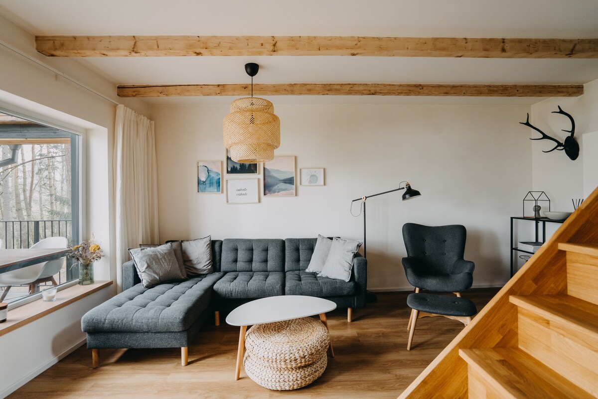 Chata se nachází na břehu Milčanského rybníka, asi 13 min autem od České Lípy v nádherném borovicovo-březovém lese. Objevili jsme ji úplnou náhodou a byla to láska na první pohled. Prošla velkou rekonstrukcí, aby byla přesně podle našich představ a nyní, když je vše hotovo, se o ni rádi podělíme, protože chceme, aby měl každý možnost čerpat energii z tohohle krásného koutu Čech.