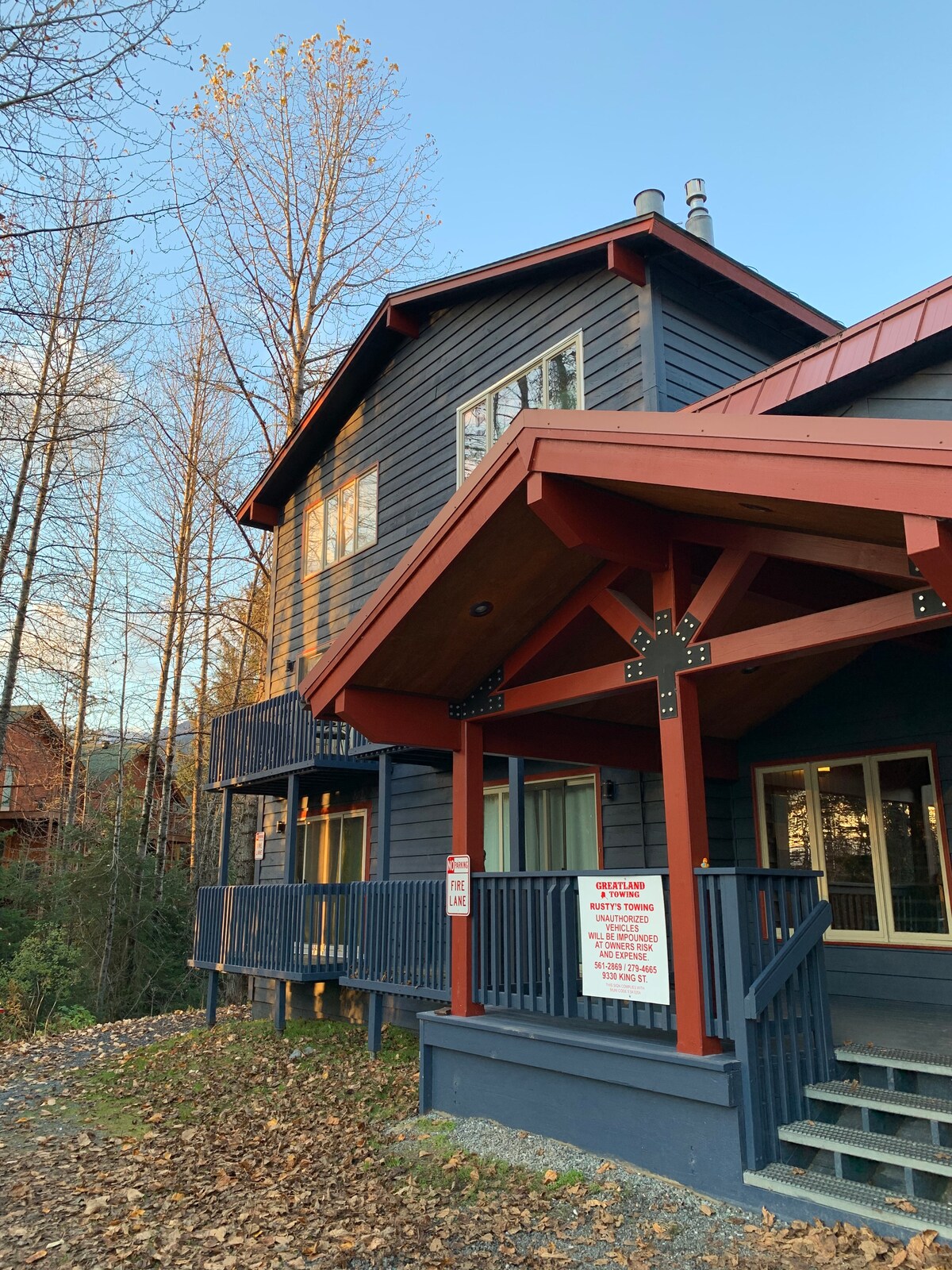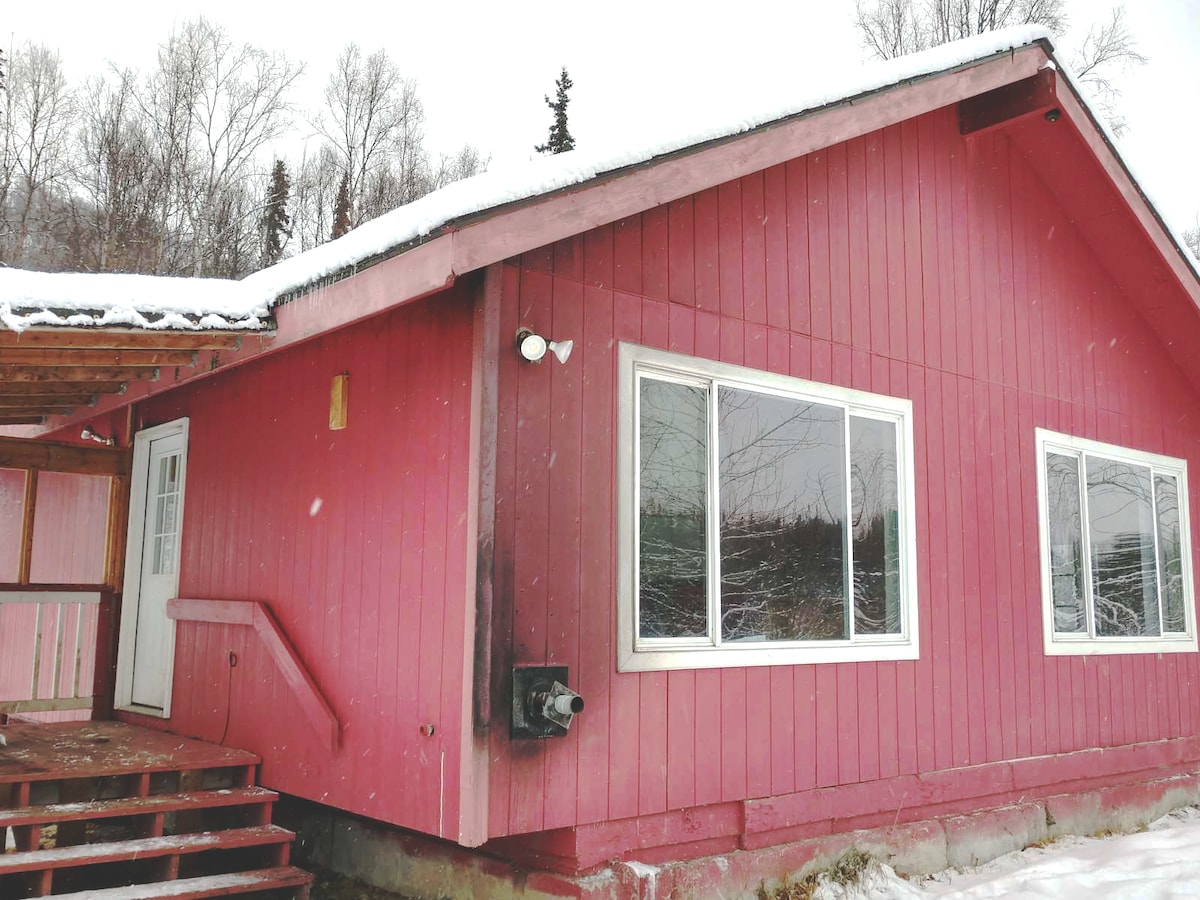 Ubicada en un bosque de cicutas de montaña de cientos de años, la casa se encuentra en un barrio tranquilo a solo 5-6 minutos a pie del sendero Glen Alps/Flattop, que proporciona el acceso más directo y fácil al Parque Estatal de Chugach. Hay un sinfín de posibilidades para practicar senderismo, escalada y esquí desde la casa. O, si prefieres sentarte y relajarte y leer un libro, la vista desde la terraza o el sofá de la sala de estar del horizonte de Anchorage y Denali/Mt. McKinley es espectacular.