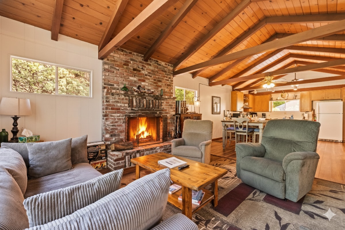 SNOW CHAINS or AWD may be REQUIRED PONDEROSA CA- SEQUOIA NAT FOREST! 2.5 HOURS from Sequoia PARK same trees-no crowds! A mountaintop paradise away from it all at 7200 ft. Ponderosa is a hidden gem! Enjoy a slower pace of life and breathe the freshest mountain air in this remote mountain town. Enjoy your morning coffee on the deck with endless forest views. @casapondo on Insta for news! REMOTE LOCATION! No restaurant, grocery or gas. Bring your food, take your trash. 😊🌲