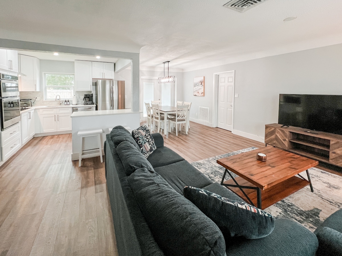¡Nuestra casa luminosa y abierta es perfecta para unas vacaciones familiares, una escapada cálida para trabajadores remotos o una estancia de temporada! Amplios dormitorios, 2 baños completos, cocina bien equipada, lavadora/secadora y un gran patio vallado en un barrio tranquilo que ofrece las comodidades del hogar. A poca distancia en coche de todo lo que St. ¡Pete tiene que ofrecer! - Playa: 12 minutos. - Restaurantes, museos, tiendas del centro: 20 minutos. - Parque/piscina Walter Fuller: 6 minutos. - Tienda de comestibles Publix o Target: 4 minutos. - Disney: 90 minutos. - Busch Gardens: 40 minutos. - Aeropuerto de Tampa: 30 minutos.