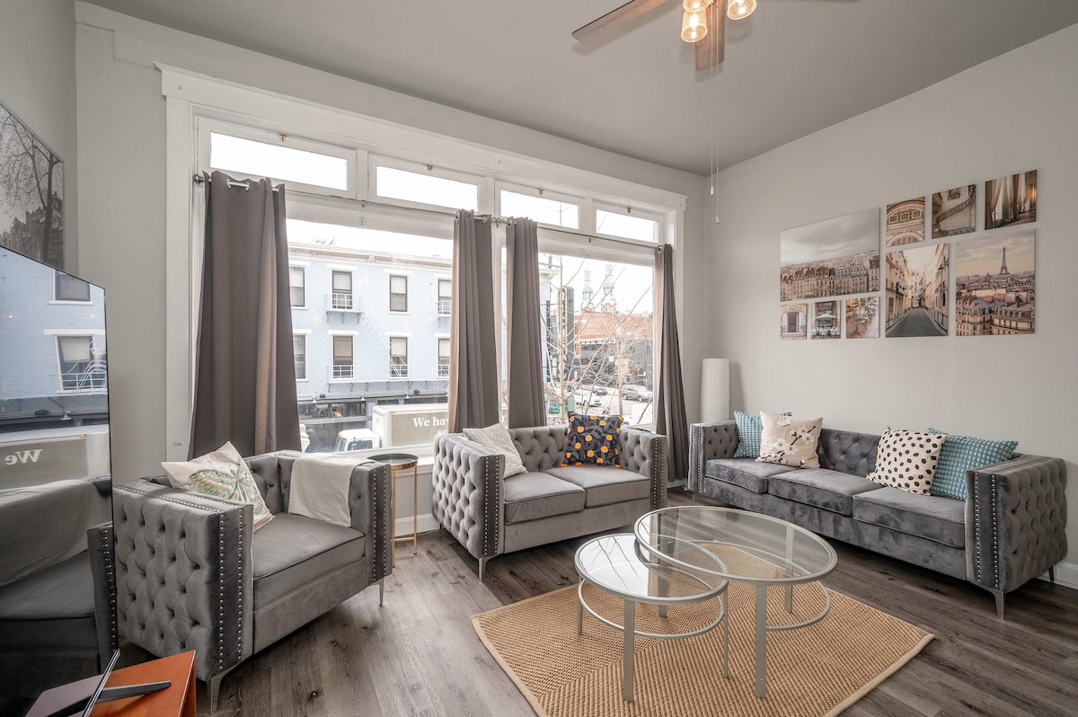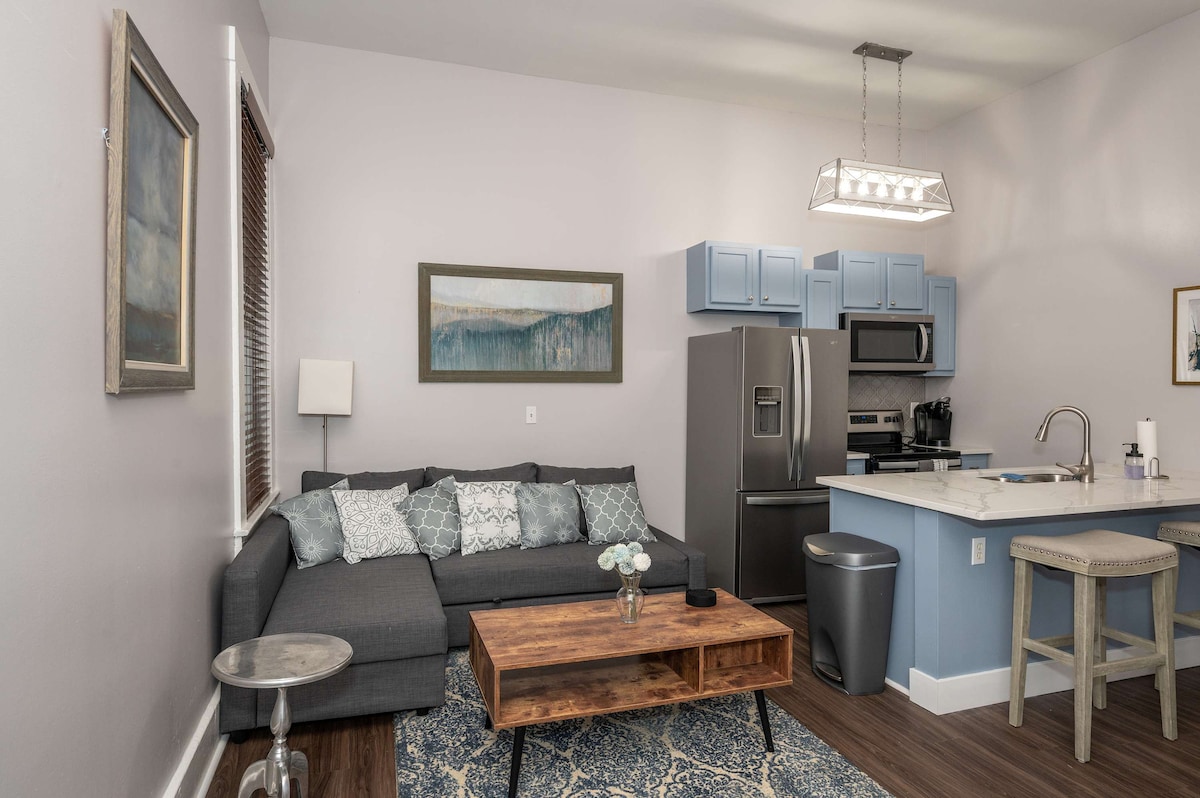 Located in a charming historic building in the heart of Covington you will find a trio of chic and cozy apartments, the perfect destinations for your next vacation. When booked together, these modern suites provide three private, independent spaces for your group while still being close enough together to link up for meals, a movie night, or happy hour prior to heading out to dinner.
