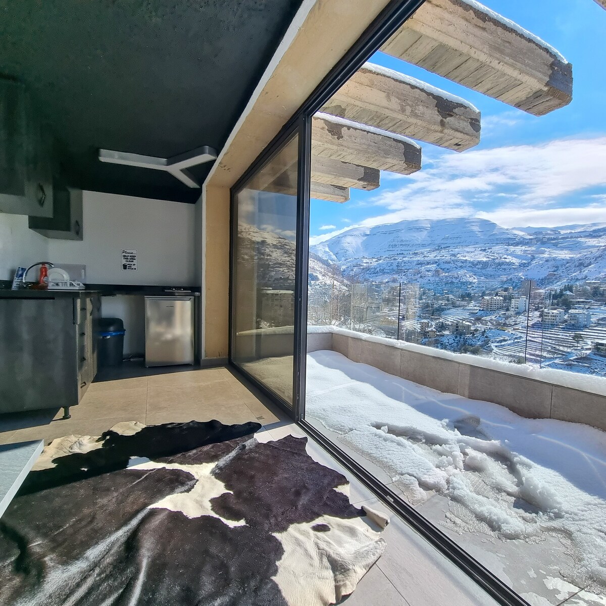 Welcome to Alto Faqra — a luxurious mountain villa offering a five-star experience with stunning views of the Faqra ski slopes. Just three minute from the lifts, this modern retreat combines comfort and style with spacious living areas, a cozy fireplace, and breathtaking panoramic scenery — perfect for an unforgettable mountain escape