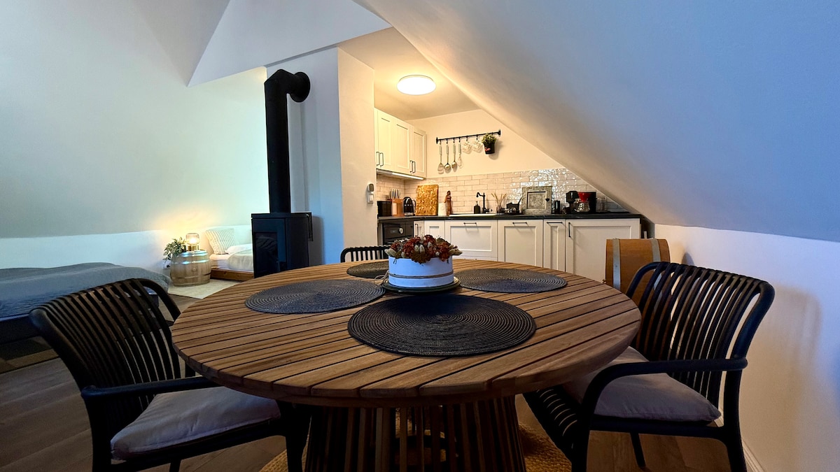 La casa te espera en la pintoresca ladera del viñedo a lo largo de la Ruta del Vino. Con su terraza privada de vinos y su entorno tranquilo entre las viñas, es el lugar perfecto para saborear los vinos de la finca. :) Desde el mirador, se tienen unas impresionantes vistas panorámicas del lago Balatón. Las mañanas comienzan con el canto de los pájaros, e incluso es posible que veas ciervos y conejos deambulando cerca. Una gran terraza, un viñedo y una acogedora chimenea completan la experiencia. La ciudad y el lago Balaton están a un paso. @facsigabirtok