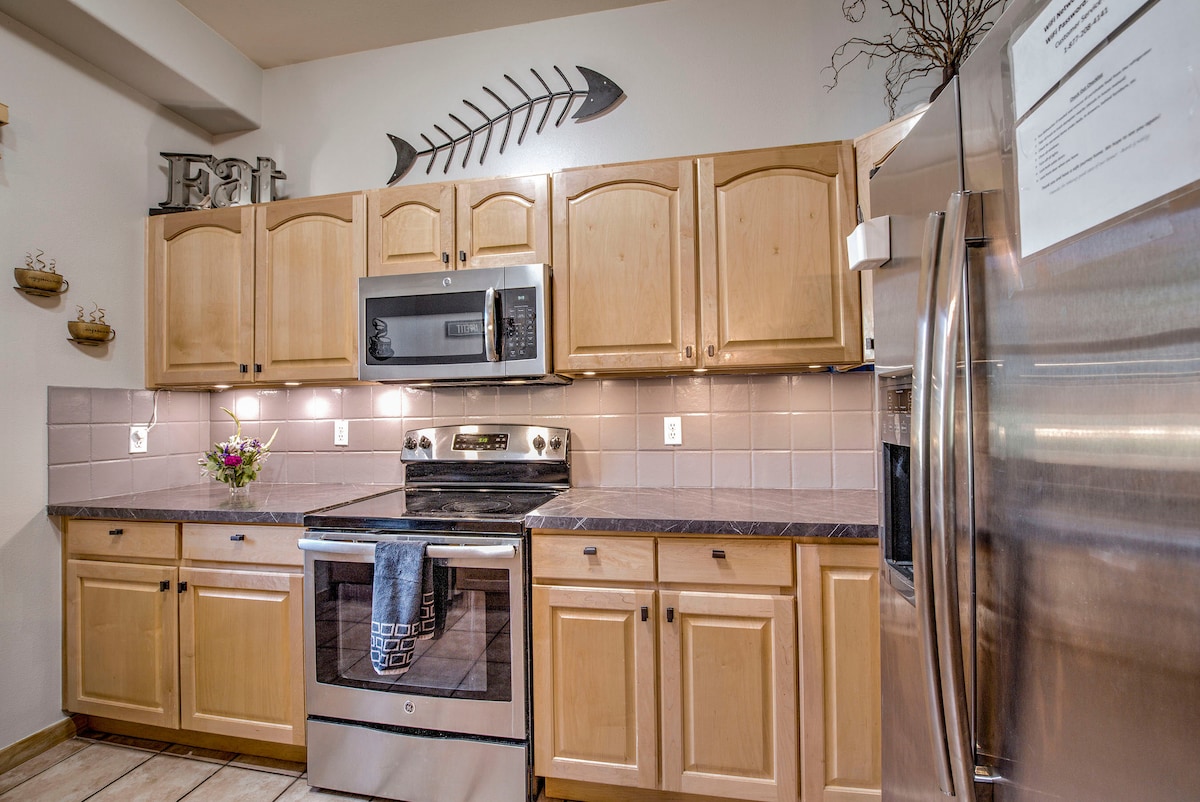 ¡Bienvenido a nuestro luminoso apartamento de 1 dormitorio en el corazón de River Run Village (Keystone Mountain)! ¡Evita los autobuses hasta los remontes, ya que este apartamento está a 3 minutos a pie de la telecabina! Este apartamento tiene capacidad para cuatro personas y cuenta con un dormitorio privado con cama tamaño king, así como una unidad actualizada con encimeras de granito. Disfruta de tu bebida favorita mientras tomas el sol y vistas espectaculares de las pistas, ya sea en el interior calentado por el fuego o en el exterior en tu propio balcón privado.