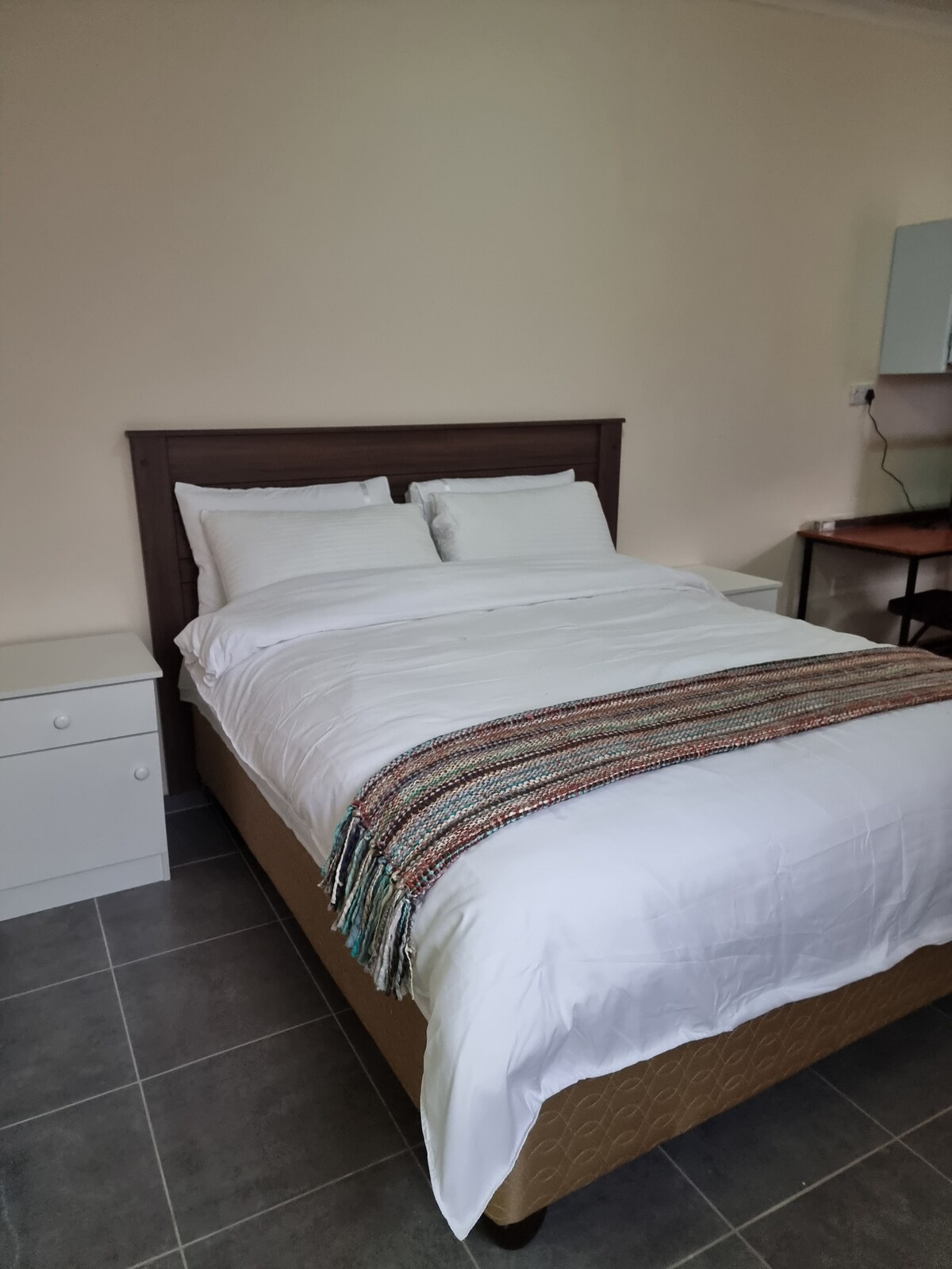 Moderno apartamento estudio de 25 m² de nueva construcción, situado en el centro de Gaborone West, en el barrio residencial de BKT. A 2,5 km del distrito financiero, la sede de la SADC, el Centro Internacional de Convenciones de Gaborone (GICC) y el enclave gubernamental. A menos de 15 km del Aeropuerto Internacional Sir Seretse Khama. Cerca de la principal terminal de autobuses/estación de tren de la ciudad. El apartamento cuenta con una moderna cocina equipada, lavadora, armario empotrado, escritorio y todo lo que necesitas, además de su propia entrada privada. Wifi y aparcamiento gratuitos.