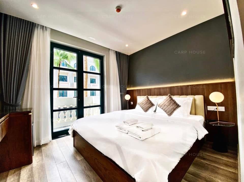 Mellon Oasis, located in the middle of Sunset Town (An Thoi). Address: Positano 91, Khu Sunset Town (Địa Trung Hải), An Thới Our spacious room (40m2) provides guests with a king bed (1.8×2m), 65-ich smart TV, air conditioning, work desk, mini fridge, sofa space, wardrobe, hair dryer, kettle and steam iron. Private bathroom comes with a bath that can fit 2 people and a rain shower.