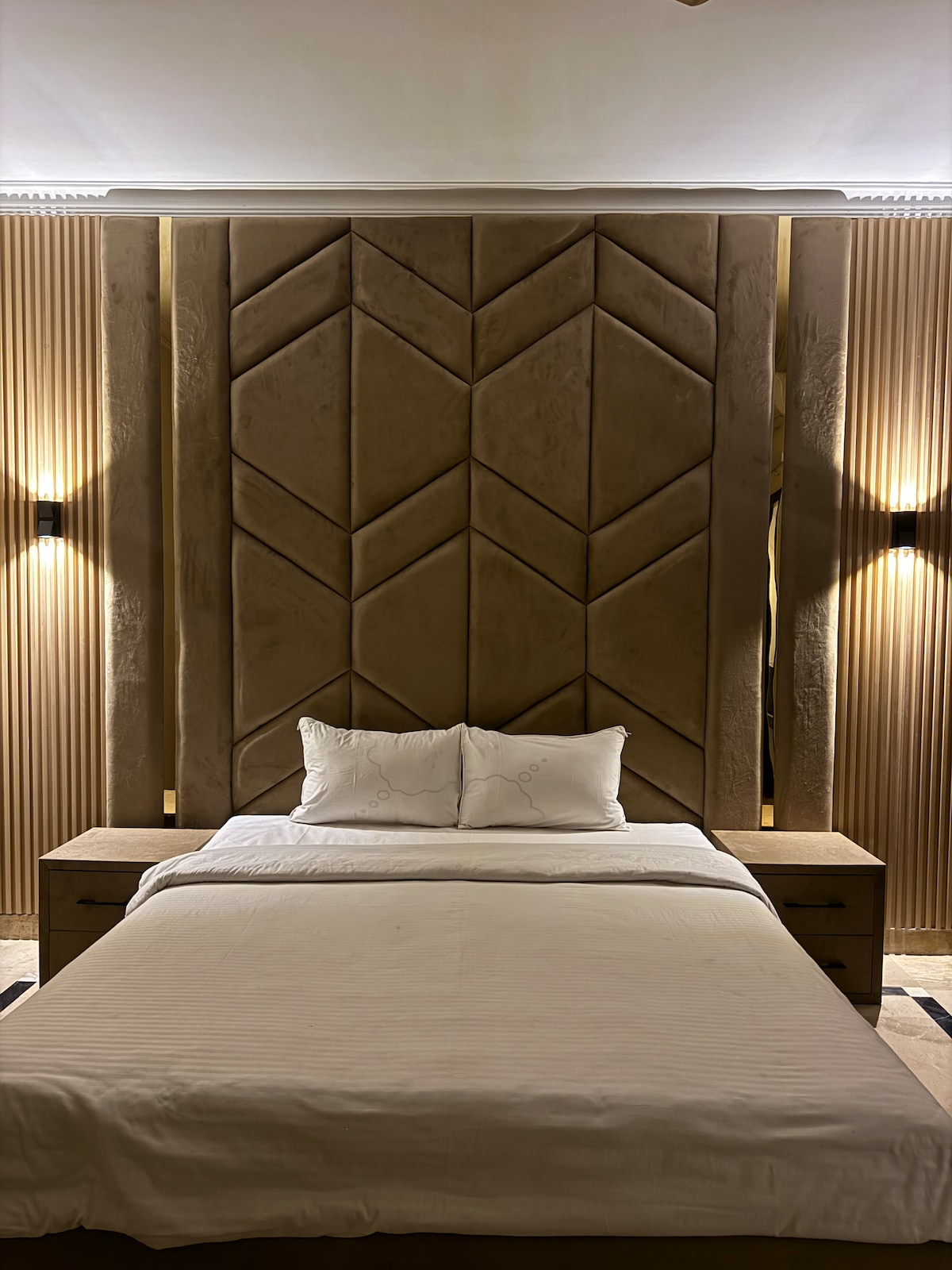 Disfruta de una estancia inolvidable en nuestro moderno apartamento de 1 dormitorio, perfectamente situado en el centro de E-11/2, a pocos pasos de las mejores cadenas de comida rápida, como KFC, Domino's, Papa John's, Cheezious y muchas más. Disfruta de un mobiliario moderno, una cocina totalmente equipada y una cómoda sala de estar. Wifi de alta velocidad, una cama tamaño king y un televisor Google de 55" con Netflix y Amazon Prime activos. Reserva tu estancia hoy mismo y siéntete como en casa.