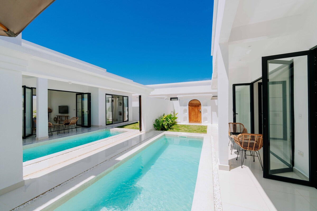 Discover our Sea Breeze Bliss retreat! This modern white house offers panoramic ocean views and a private pool, creating the ultimate seaside getaway. With floor-to-ceiling windows, open living space, and a generous terrace, enjoy the sun and sea breeze. Relax by the pool or explore the nearby palm-fringed coastline. Perfect for an unforgettable vacation!