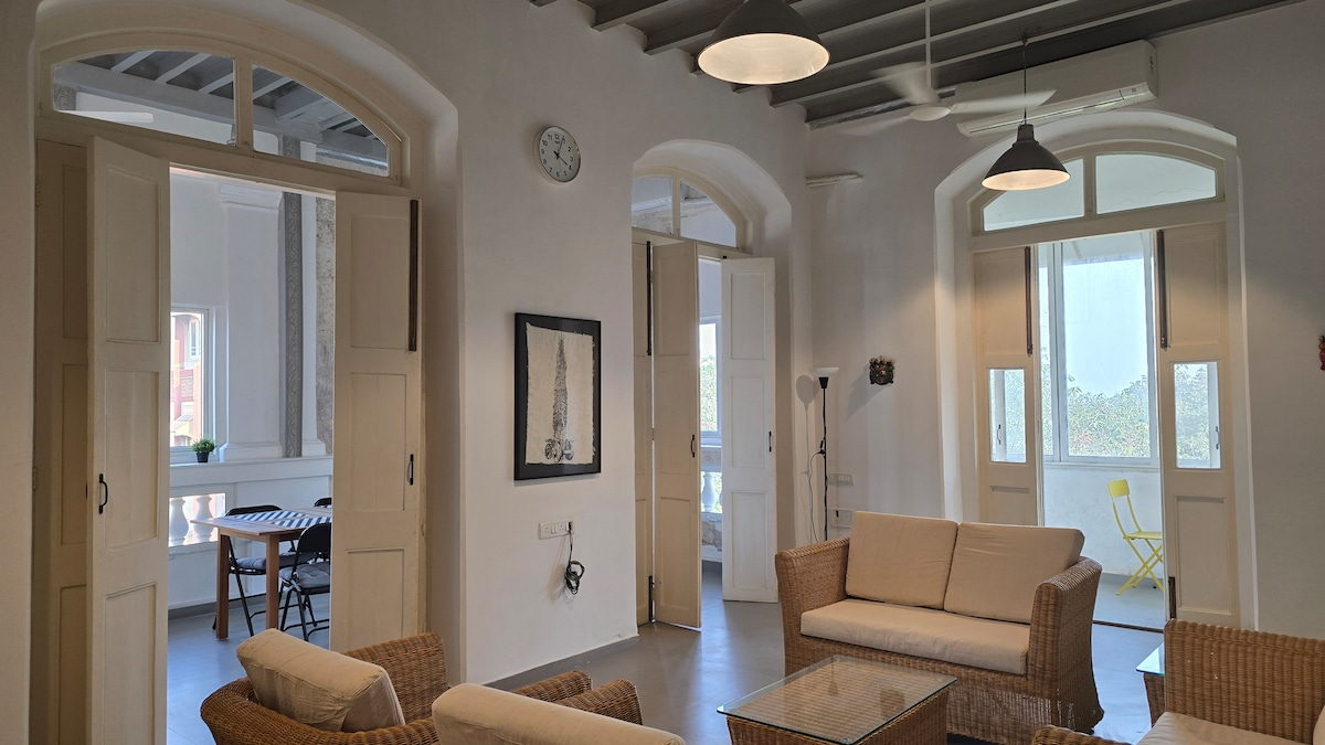 Da la bienvenida a nuestro exclusivo retiro en Airbnb del sur de Bombay, ubicado en un barrio elegante. Sumérgete en el lujo de este encantador bungaló, una joya que captura la esencia de la vida en Bombay. La habitación privada es un remanso de sofisticación, equipada con cocina. Sal a una encantadora zona de estar al aire libre rodeada de un exuberante jardín con una impresionante vista al mar. La ubicación privilegiada ofrece una oportunidad única para disfrutar de la belleza del mar Arábigo desde tu alojamiento.