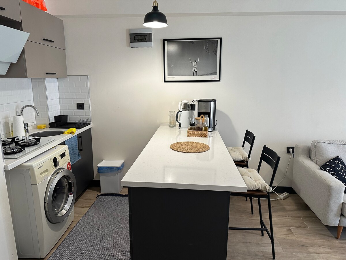 Nuestro moderno y recién diseñado departamento está frente a la playa 2 minutos; 5 minutos a pie del centro de la ciudad, museos y lugares de interés. Nuestro nuevo edificio le ofrece una estancia tranquila y agradable debido a su ubicación. Confort y privilegios en el hogar: - Wifi y sistema de hogar inteligente - Aire acondicionado (refrigeración) y sistema de calefacción con termostato en la habitación - Controles de iluminación y dispositivos con Google Home - Disfruta de la comodidad de tu hogar con detalles de diseño elegantes y lujosos - Ubicación céntrica cerca de tiendas y puntos históricos