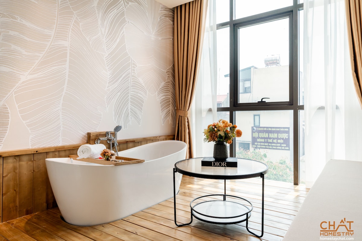 Imagina beber una taza de café especial de la casa, contemplar la vista siempre verde de Hanói y disfrutar de la luz del sol temprana que llega directamente al pequeño balcón y a la amplia ventana de cristal, todo mientras experimentas el espacio vital y de trabajo de un verdadero artista. Al apartamento revestido de madera le sigue una galería de fotos en el tercer piso. Además, estás en la zona más histórica de la capital, donde se encuentran tanto la Ciudadela Imperial de Thang Long como el Mausoleo de Ho Chi Minh.
