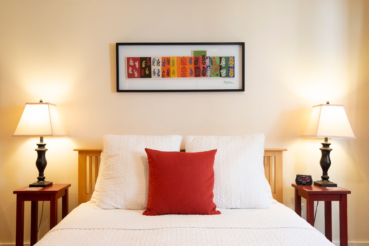 Siéntate en esta suite de invitados estilo salón y descubre un lugar para recargar energías. Esta casa de arquitectura clásica renovada cuenta con un diseño de planta abierta, techos de 8 pies, una cocina totalmente equipada de tamaño completo, una oficina tranquila, muebles lujosos y acabados rústicos. La suite tiene aproximadamente 800 pies cuadrados, lo que te da espacio para relajarte. Disfruta de lujosas comodidades como edredones, cubiertas de espuma viscoelástica y suelos radiantes. Recientemente se han añadido a este anuncio un patio al aire libre con sillas y mesa auxiliar, lavadora y secadora de tamaño completo y plaza de aparcamiento en la calle. Este departamento con techo alto, concepto abierto y hermosamente amueblado con cama tamaño king + oficina es un verdadero hogar lejos de casa. Ubicado en Tangletown, que está en medio de Wallingford y Green Lake, hace que caminar a muchos servicios locales sea muy fácil. De mayo a septiembre hay un mercado de agricultores en el parque (Meridian Park) a solo 1 manzana de distancia los miércoles por la tarde. Disfruta de tu propio apartamento privado que incluye: cocina completa, oficina separada y espacio para guardar la ropa con espejo de cuerpo entero, baño 3/4 con muchos suministros nocturnos, un sofá cama con ropa de cama, cama tamaño queen con ropa de cama, juegos, libros, lámparas de noche con cargadores, TV habilitada para ordenador HD, que se vuelve hacia el comedor, sala de estar o dormitorio e internet inalámbrico. Vivimos en el nivel superior de esta casa. Estaremos encantados de responder a cualquier pregunta que tengas, pero respetamos tu privacidad, por lo que seguiremos tu ejemplo. Tangletown es uno de los barrios favoritos de Seattle, y esta manzana en particular es muy tranquila (sin ruido de la autopista) y conveniente para caminar a lugares (cima de la colina). Está a solo unas manzanas de Green Lake, el Central Park de Seattle, y a poca distancia a pie de muchos restaurantes, cafeterías y pubs maravillosos. A la gente le encanta vivir aquí debido al fácil acceso al centro de Seattle y a su ubicación muy céntrica. Esta casa se encuentra en una importante línea de autobús que te lleva directamente al centro de la ciudad; fácil traslado a UW o Ballard. Hay muchos Uber. Walkscore es increíble, a poca distancia a pie de muchos, muchos restaurantes, pubs y cafeterías fabulosos. A la gente le encanta esta ubicación en Seattle, ya que es muy accesible y céntrica, además de tener un ambiente muy agradable. No se permite fumar ni traer mascotas. Horario de silencio de lunes a viernes a las 22:30 h. Sábados y domingos a las 23:30 h. No se permiten fiestas grandes, por favor. Hay mucho aparcamiento gratuito disponible en la calle. Entrada sin llave.