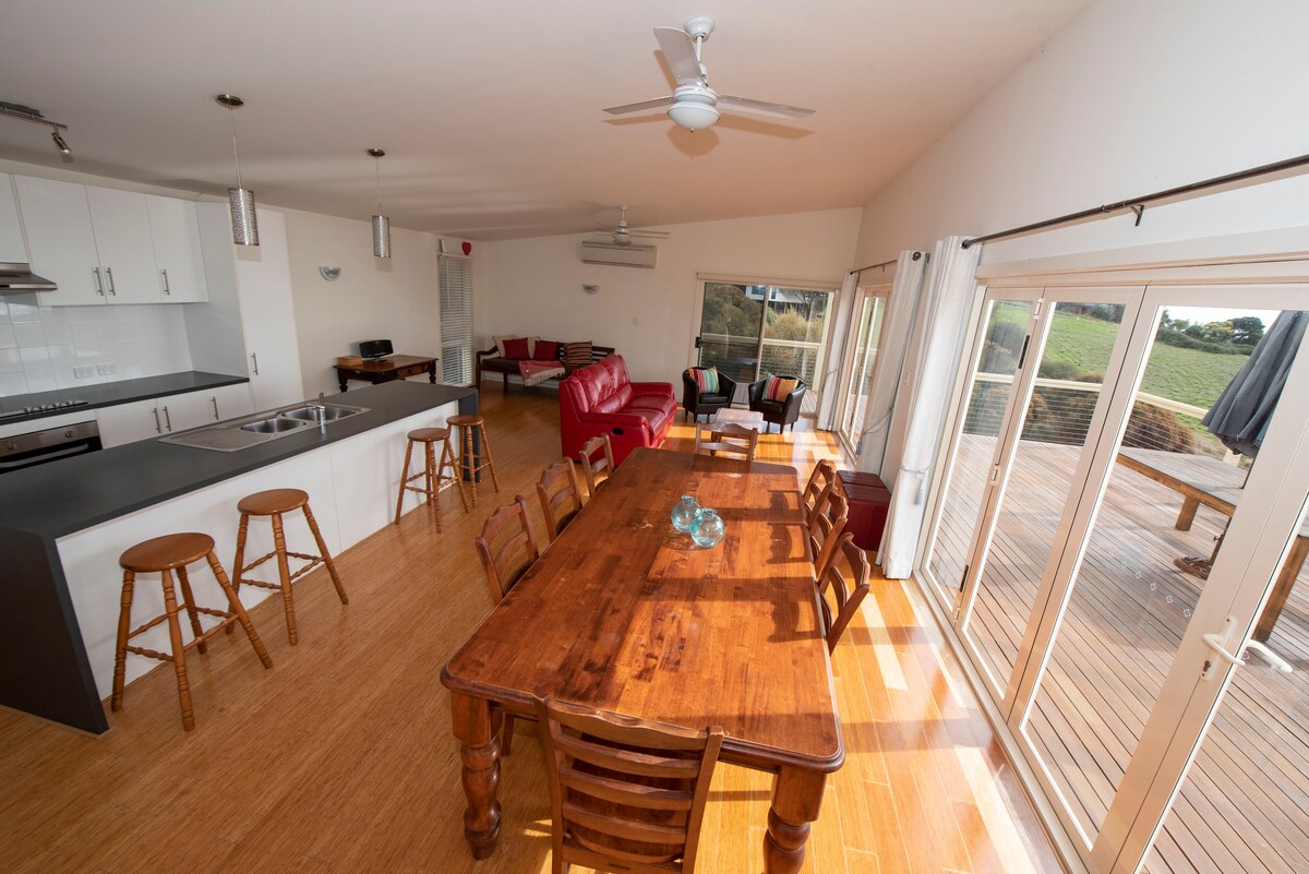 Island Burrow está perfectamente situado en el límite de la ciudad de Penneshaw entre hermosos robles. Experimenta la belleza natural de la isla Canguro, con vistas al mar y al monte desde la terraza y a 10 minutos a pie de la playa prístina de la ciudad. Disfruta de las visitas de canguros, ualabíes, cacatúas negras brillantes y algún equidna. La casa en sí es única y está cuidadosamente diseñada con muebles de calidad y obras de arte que reflejan los colores de los pintorescos alrededores. ¡Ven a relajarte y disfruta de la vida isleña!
