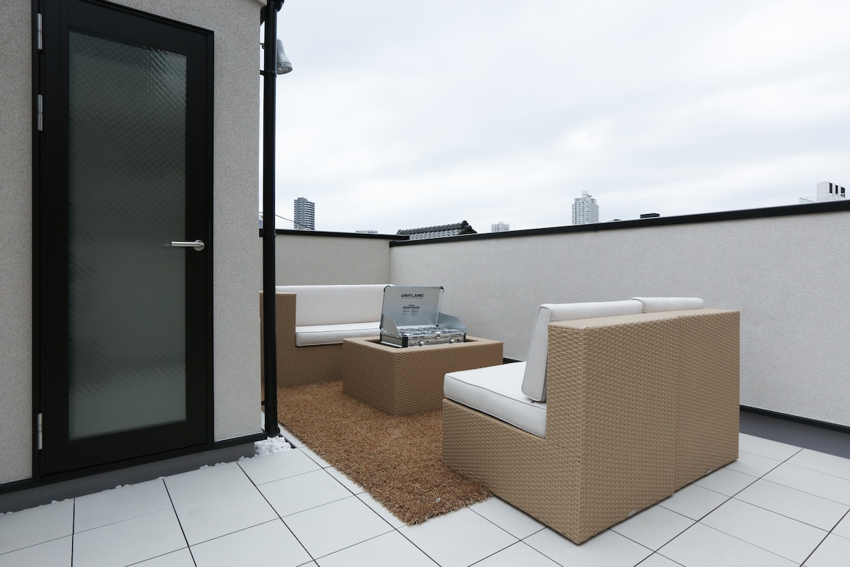 4 estaciones desde la estación de Asakusa en la línea Tobu Skytree, a 7 minutos a pie desde la estación de Kanegafuchi. Hay supermercados, farmacias, Daiso y baños públicos a 2 minutos a pie de las instalaciones. La habitación de 3 pisos de 100 m² se divide en un atrio abierto, sala de estar / comedor, habitación de estilo japonés y 4 dormitorios, por lo que es ideal para estancias largas. Hay 2 lavabos y 2 inodoros. El baño tiene una sauna de niebla. Es una zona residencial muy tranquila. Puede acomodar hasta 12 personas.