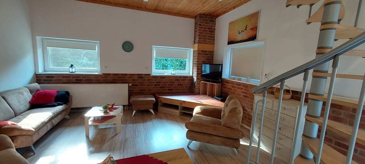 El apartamento de 120 metros cuadrados es la mitad de una casa de campo de 1898 y ha sido renovado. Rodeada de campos, la casa está en una ubicación aislada y es perfecta para disfrutar de la naturaleza y la tranquilidad. Hay un jardín con terraza en el apartamento y también hay una barbacoa disponible bajo petición. Desde la terraza sur se puede ver a través de los campos hasta las cercanas montañas Wiehn.