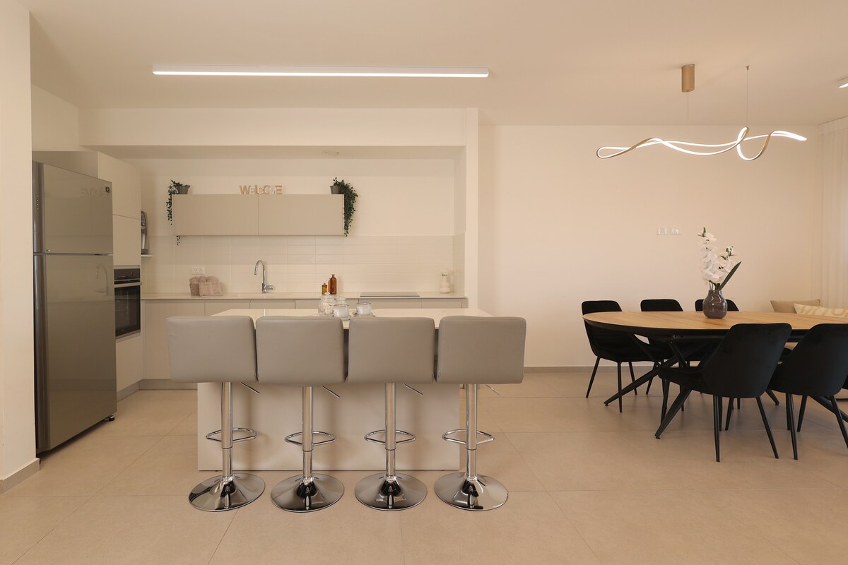 A beautiful beachfront apartment located in Givat Olga, in the centre of Israel. The luxury apartment includes 3 bedrooms (including a safe room, mamad) and 4 beds. The building is brand new (1 year old) and has a 24/7 Concierge. It is located in front of the beautiful sandy beaches of Hadera (first line to the sea. just cross the street to get there). The apartment is on the 16 floor and has luxurious 20 Square meters balcony with the best view ever.