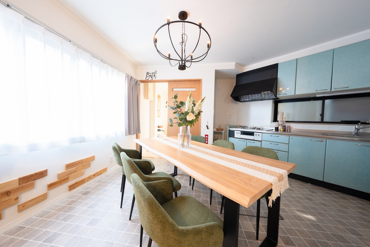 • 欢迎您入住Peace&Harmony平和屋.荣生高端民宿,享受安静美好的旅行时光。 • Peace&Harmony平和屋.荣生高端民宿最多可容纳14人全租别墅(-楼二楼各有一个厕所) • 民宿位于名古屋市中心区西区,位置极佳,带日式庭院花园,两层楼、150平方米的房屋设有温馨的客厅+餐厨LDK、一间现代和室以及三间洋室,是为快乐与舒适设计的空间;2025年6月装修,独栋别墅,宽敞舒适;位于安静的住宅区内,非常适合观光和商务。 • 距离名铁名古屋本线「荣生站」仅5分钟步行路程,可直达名古屋车站,步行5分钟有巴士车站,荣生站有特快列车,可直达中部国际机场(约45分钟)地理位置非常便利。 • 附近步行1分钟有便利店、步行5分钟有永旺购物中心和Noritake森林,丰田产业技术纪念馆距离500米。 • 免费停车位、无线网络适合长期住宿和商务差旅。 再次欢迎您光临!